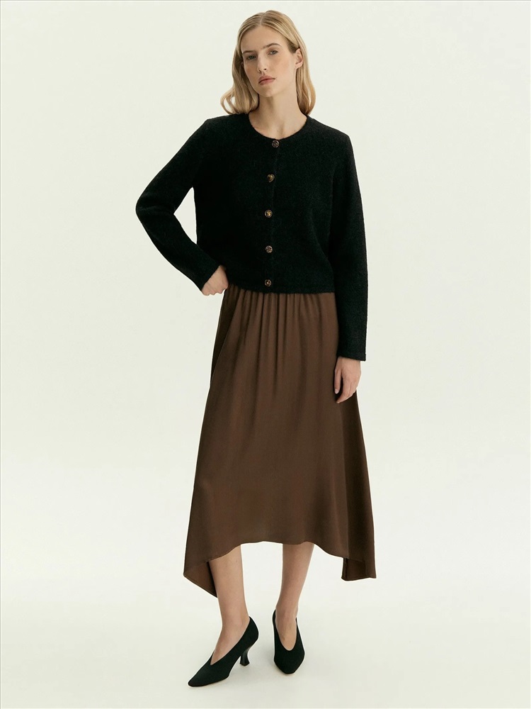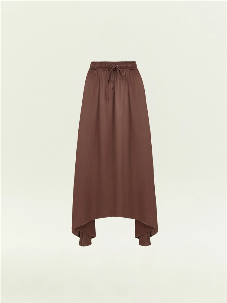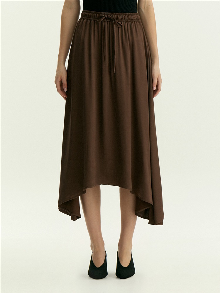 Модель сделана на комфортной кулиске с завязкой: посадку можно регулировать, а юбка смотрится ещё интереснее. Два асимметричных края вносят в аутфит изюминку, подчёркивают динамику и вписывают образ в ключевые тренды года.