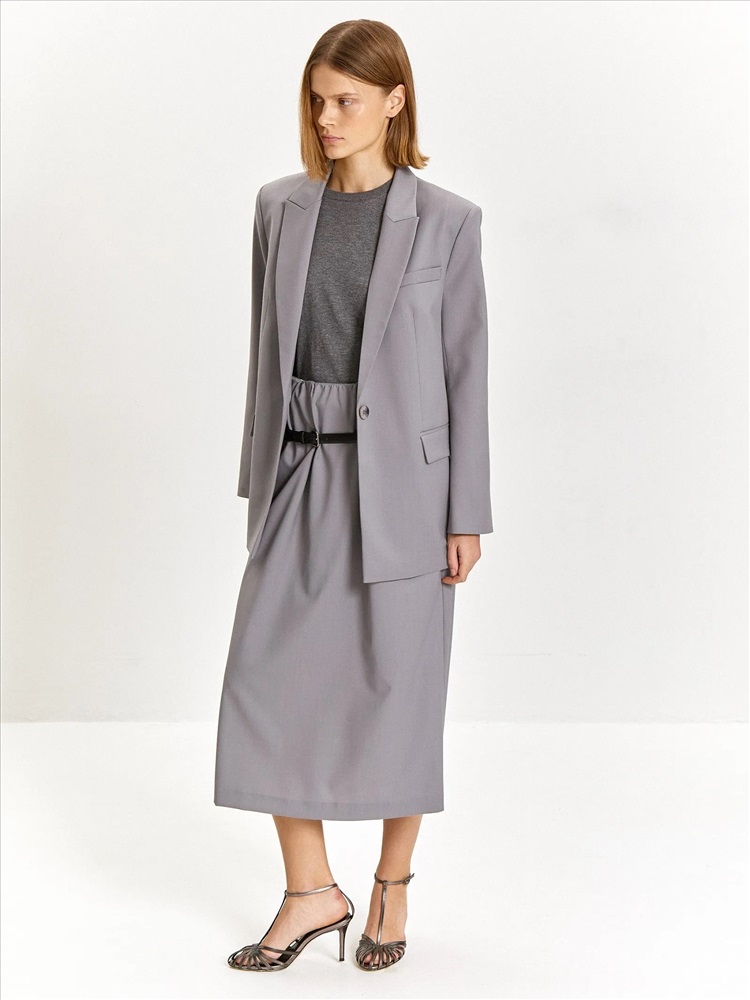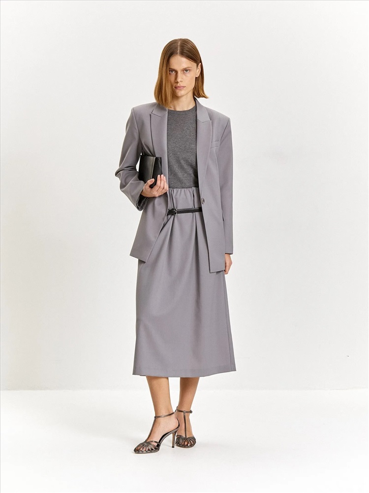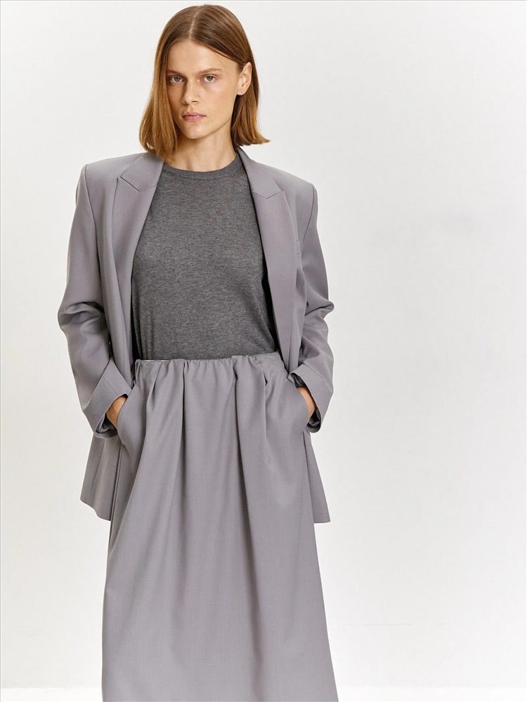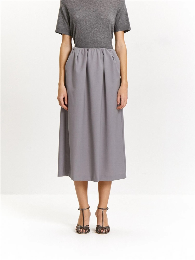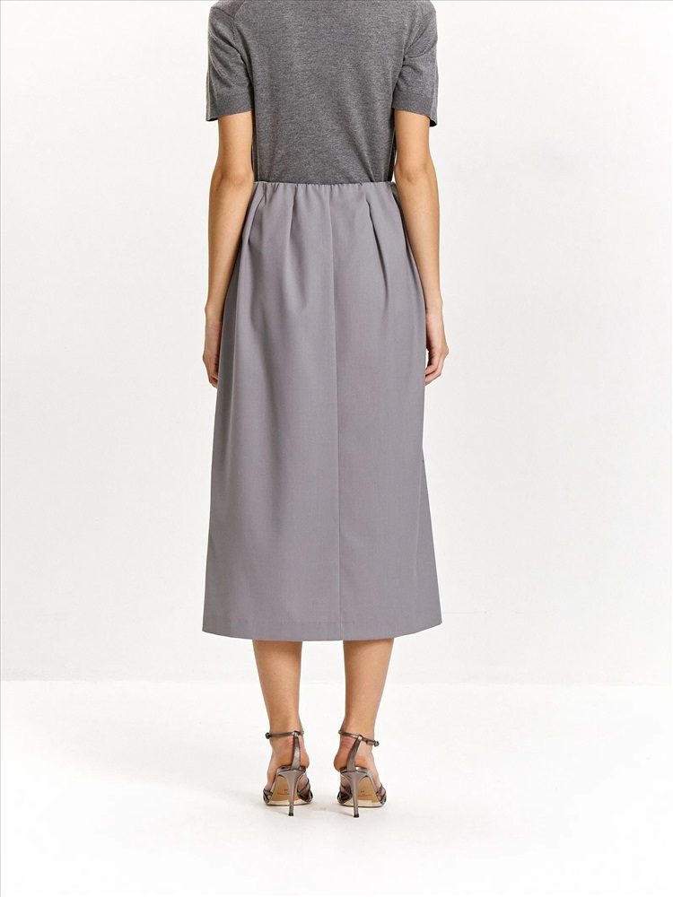Стильная и трендовая юбка в длине миди с защипами на талии подойдёт для будней и особого случая. Выполнена без подкладки и без застёжек, с резинкой в талии. Материал на четверть состоит из шерсти, сделан с добавлением эластана для лучшей посадки. Юбка может стать частью капсулы с брюками и жакетом peter.