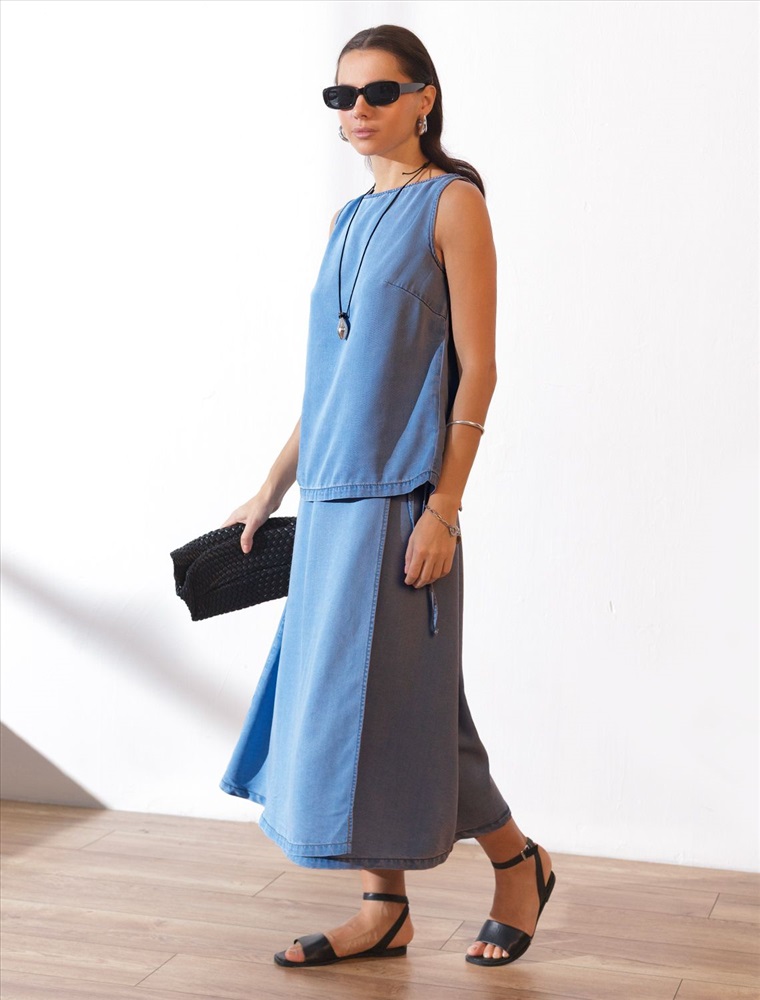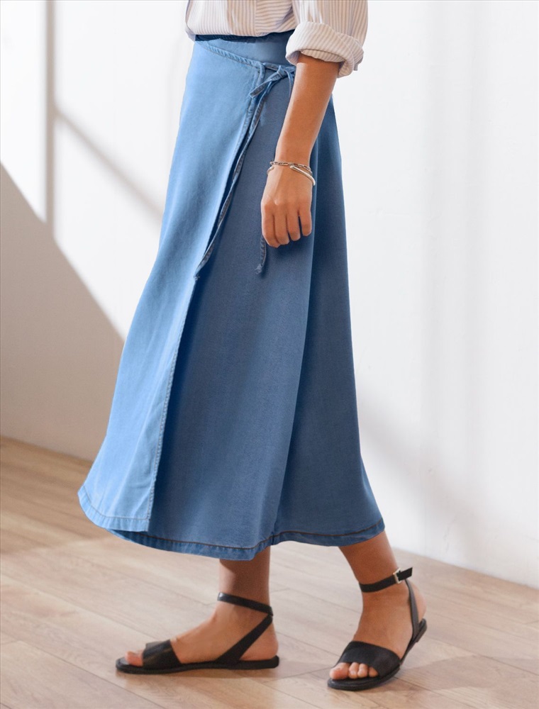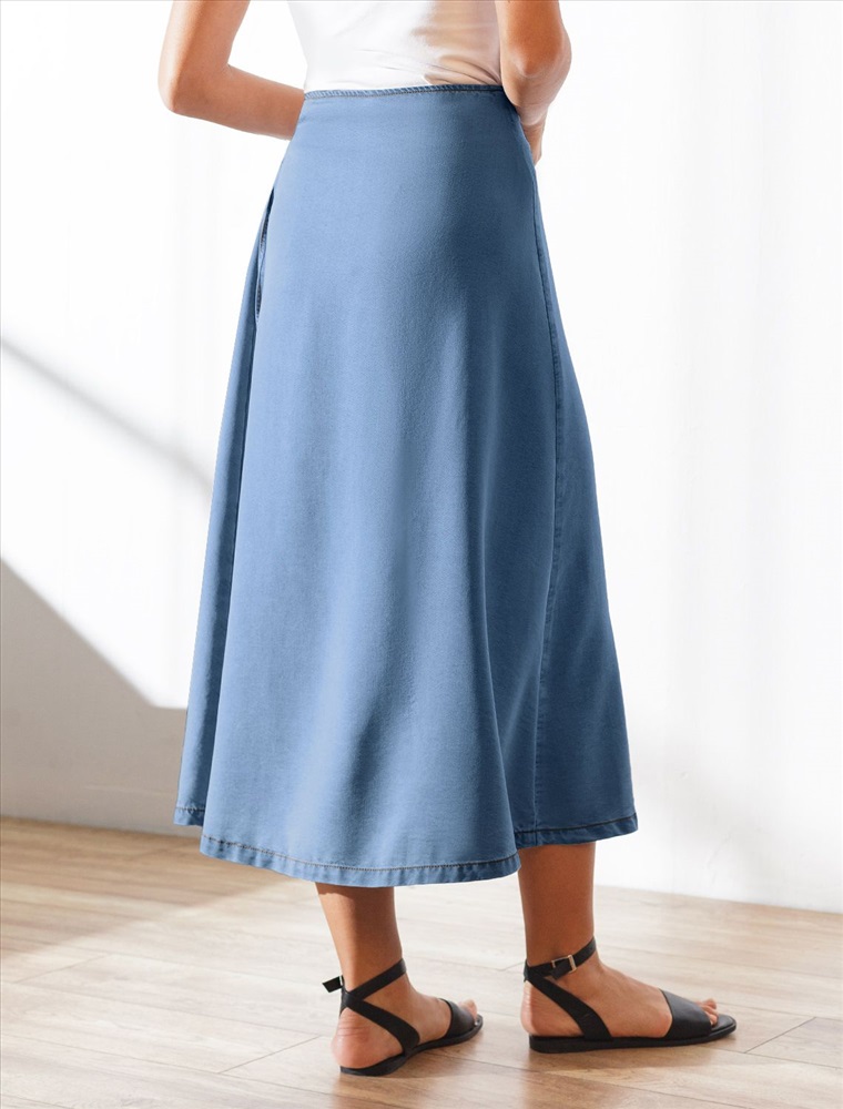 Плотность: 7,8 OZ Эффектная юбка миди на запах А-силуэта светло-синего цвета из джинсового лиоцелла плотностью 7,8 OZ станет отличным выбором для тех, кто ценит комфорт и легкость в повседневной одежде. Свободный крой юбки мягко скроет недостатки фигуры, акцентируя внимание на достоинствах и придавая силуэту привлекательность и женственность. ЗапАх гарантирует удобство и возможность регулировки объема талии, а также добавляет современный акцент. Легкая и удобная, она подарит ощущение свободы движений. Ткань сочетает прочность и мягкость лиоцелла с вискозой, что делает её невероятно комфортной, дышащей, устойчивой к сминанию и идеально подходящей для чувствительной кожи. Юбка отлично подходит для создания легких летних образов или стильных ансамблей на каждый день. Джинсовую юбку можно сочетать в стиле кэжуал, а также создавать романтичные образы или добавлять яркие акценты с помощью аксессуаров. Юбка средней длины гармонично сочетается с разной обувью и верхом, что делает ее отличным выбором для любого случая. Рекомендуем сочетать с артикулами: D53.000, D59.018, D59.020, D59.021 Комментарии к товару