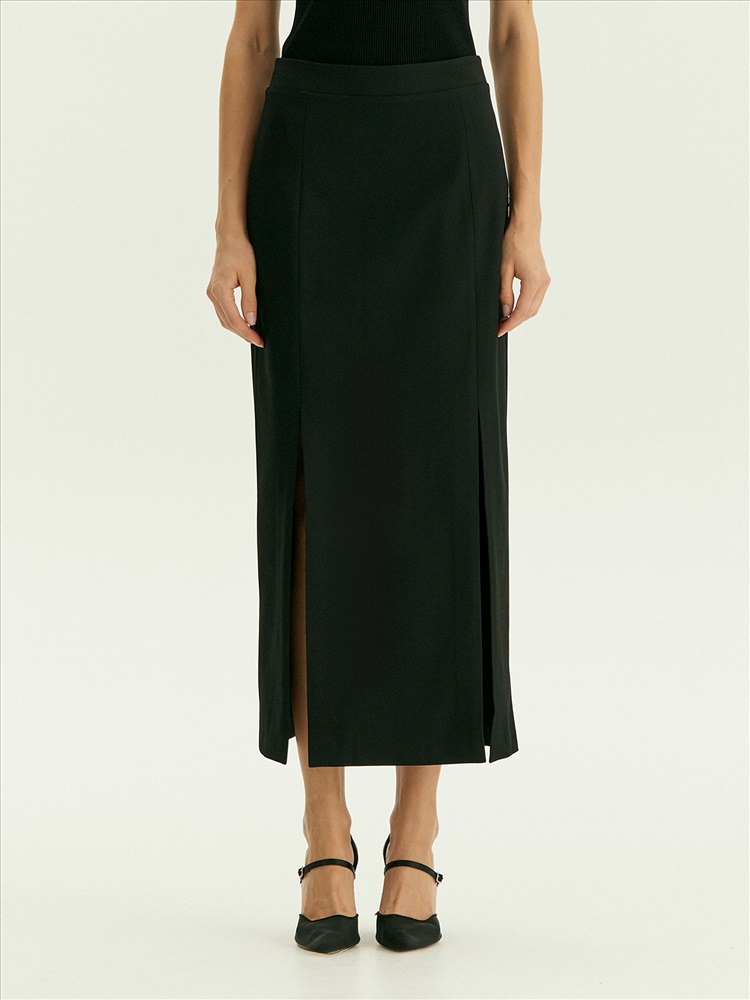 Юбка миди с глубокими разрезами сделает повседневные или выходные образы более трендовыми и дерзкими. Выполнена из приятной костюмной ткани, на подкладке с вискозой. Юбка может стать основой многофункциональной капсулы с жакетом, брюками и ещё одной юбкой monk.
