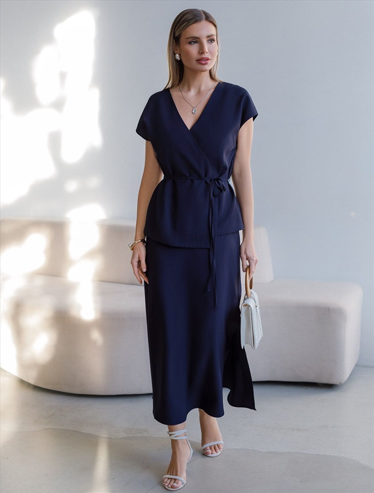 Плотность: 180 Г/м2 Юбка темно-синего цвета длины миди выполнена из плотного лиоцелла. Модель, скроенная по косой, мягко струится по телу и отлично драпируется. Лиоцелл это более дорогой и экологичный вариант вискозы, очень прочный и шелковистый. Ткань отличается от регулярной коллекции из лиоцелла - она содержит еще больше лиоцелла (92%), благодаря чему имеет более нежную шелковистую фактуру. Свободный крой юбки мягко скроет недостатки фигуры, акцентируя внимание на достоинствах и придавая силуэту привлекательность и женственность. Элегантная юбка на эластичном поясе гарантирует комфорт, а разрез с боку добавляет образу легкости и динамики. Расклешеная юбка подойдет на большие размеры, высокий и низкий рост. Юбка А силуэта будет базовым элементом для создания летних романтичных образов и стильных ансамблей на каждый день. Комплект из лиоцелла подчеркнет ваш вкус и статус. Это идеальный выбор для особенных моментов. Такой образ будет уместен на торжественных мероприятиях и приемах, выпускных вечерах, семейных праздниках и свадьбах. Рекомендуем сочетать с артикулами: D29.356, D23.079, D27.004