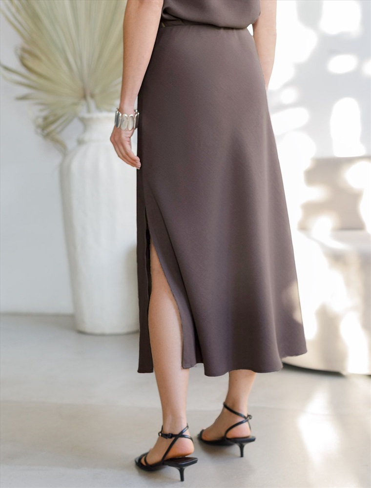 Плотность: 180 Г/м2 Юбка кофейного цвета длины миди выполнена из плотного лиоцелла. Модель, скроенная по косой, мягко струится по телу и отлично драпируется. Лиоцелл это более дорогой и экологичный вариант вискозы, очень прочный и шелковистый. Ткань отличается от регулярной коллекции из лиоцелла - она содержит еще больше лиоцелла (92%), благодаря чему имеет более нежную шелковистую фактуру. Свободный крой юбки мягко скроет недостатки фигуры, акцентируя внимание на достоинствах и придавая силуэту привлекательность и женственность. Элегантная юбка на эластичном поясе гарантирует комфорт, а разрез с боку добавляет образу легкости и динамики. Расклешеная юбка подойдет на большие размеры, высокий и низкий рост. Юбка А силуэта будет базовым элементом для создания летних романтичных образов и стильных ансамблей на каждый день. Комплект из лиоцелла подчеркнет ваш вкус и статус. Это идеальный выбор для особенных моментов. Такой образ будет уместен на торжественных мероприятиях и приемах, выпускных вечерах, семейных праздниках и свадьбах. Рекомендуем сочетать с артикулами: D29.356, D23.079, D27.004 Комментарии к товару