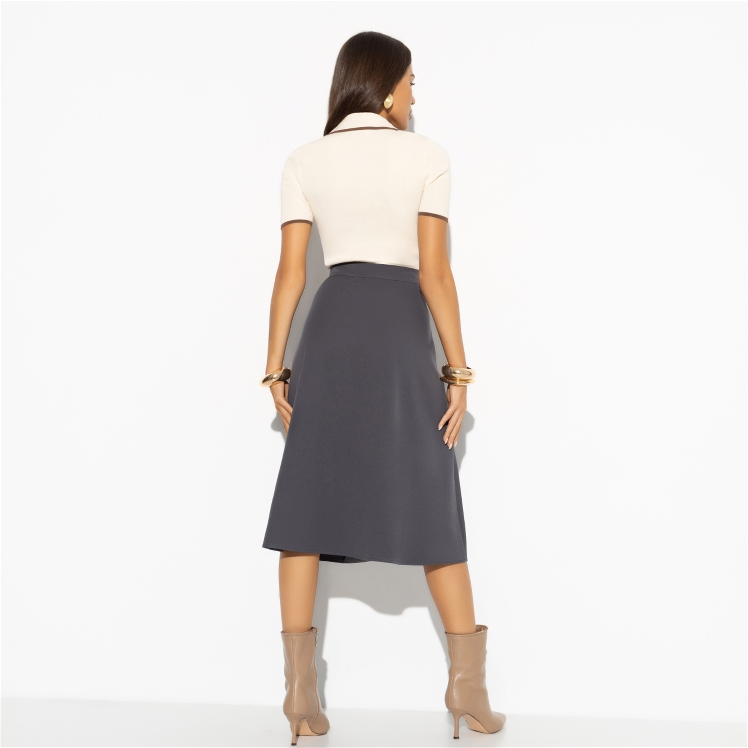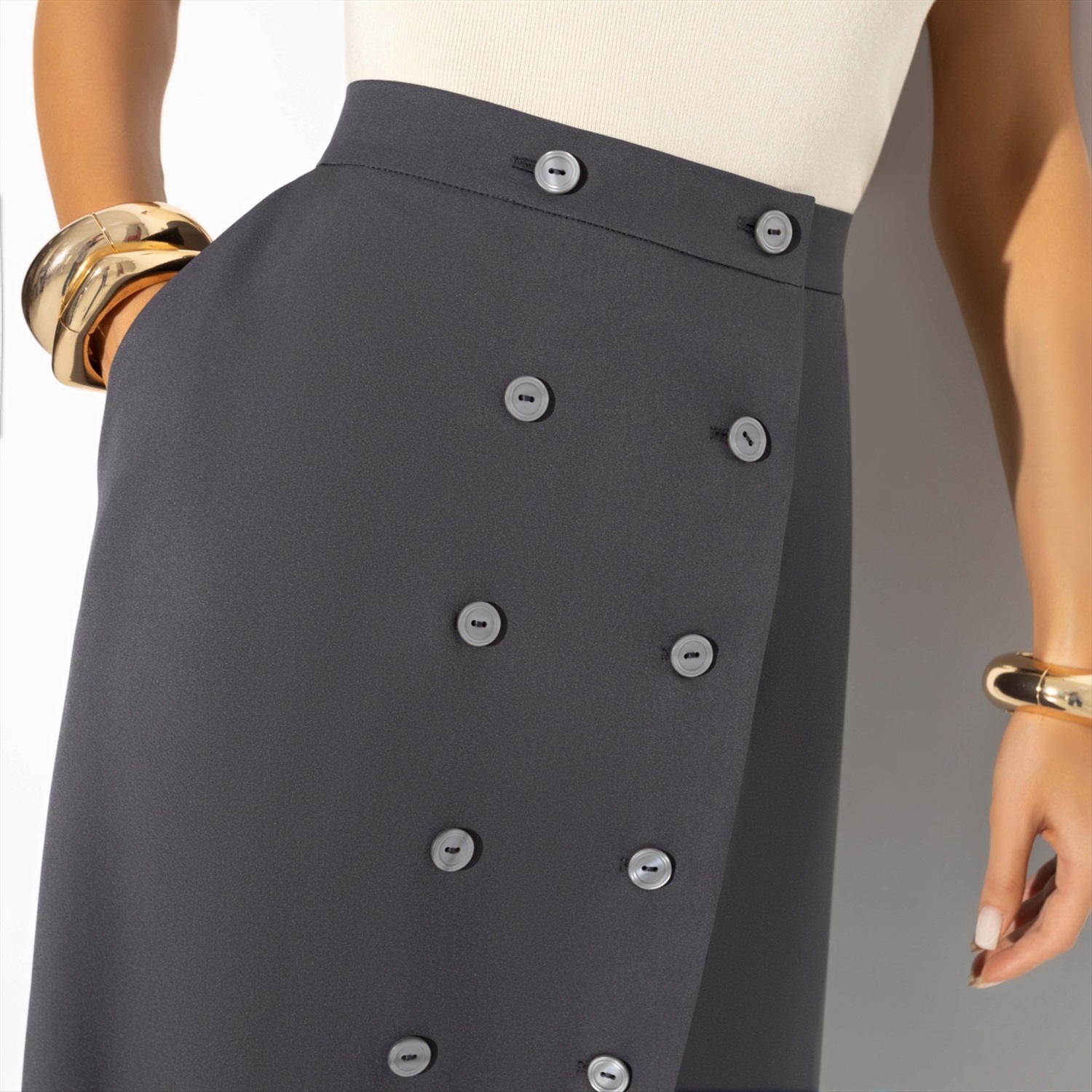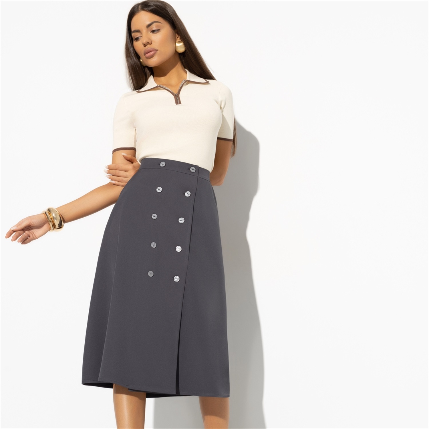 Юбка на пуговицах «Легкое приключение (new)» – это не просто предмет гардероба, а настоящий стильный выбор для тех, кто ценит уникальность и комфорт. Костюмная ткань «туран», из которой она создана, придаёт изделию изысканность и утонченность, что делает её идеальной для любого мероприятия. Впечатляющий женственный силуэт на запах с акцентными пуговицами по длине изделия превращает обычный выход на улицу в маленькое приключение, где каждый прохожий оборачивается, чтобы полюбоваться вашим изысканным вкусом. Покупая такие юбки оптом, вы сможете предложить своим клиентам истинное воплощение элегантности и стиля. Эта юбка – это не только стиль, но и практичность. Карманы, предусмотренные в дизайне, позволяют носить с собой необходимые мелочи, не теряя при этом изящности образа. Представьте себе, как ваши клиентки будут чувствовать себя уверенно и комфортно, зная, что их выбор – это идеальное сочетание моды и удобства. Оптовая покупка таких юбок станет выгодным вложением для вашего бизнеса, ведь каждая из них будет пользоваться спросом благодаря своему уникальному дизайну и высокому качеству материала. Когда вы покупаете юбки «Легкое приключение (new)» оптом, вы не просто приобретаете одежду для своего магазина – вы предлагаете своим клиентам возможность стать частью модного сообщества. Эти юбки создают атмосферу уверенности и очарования, привлекая внимание и вызывая восторг. Ваши покупатели будут возвращаться снова и снова, чтобы пополнить свой гардероб таким незаменимым предметом, который делает каждый день особенным. Комментарии к товару
