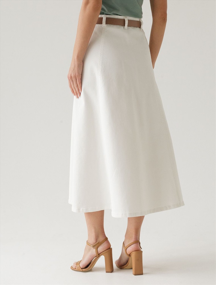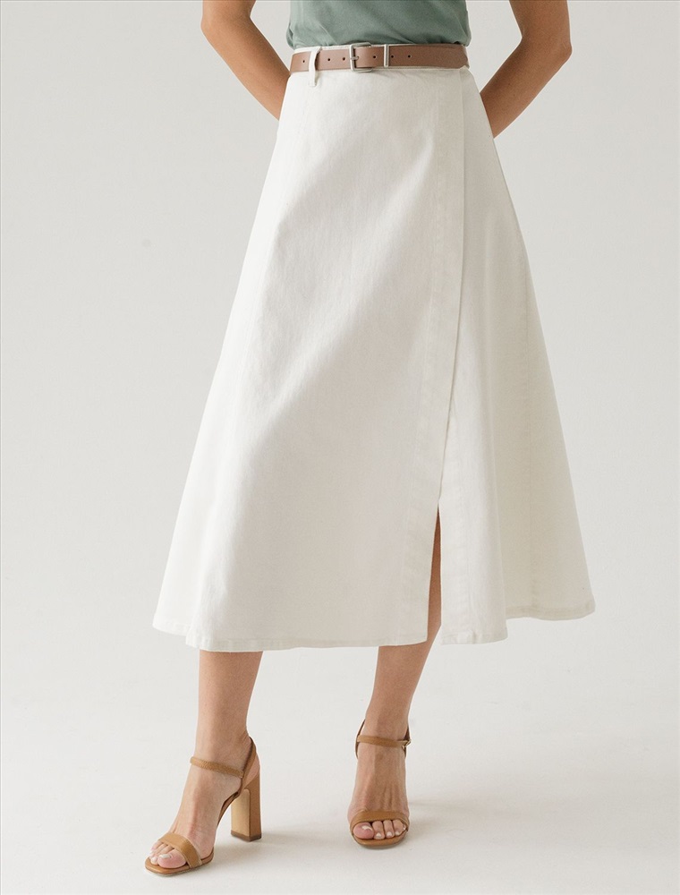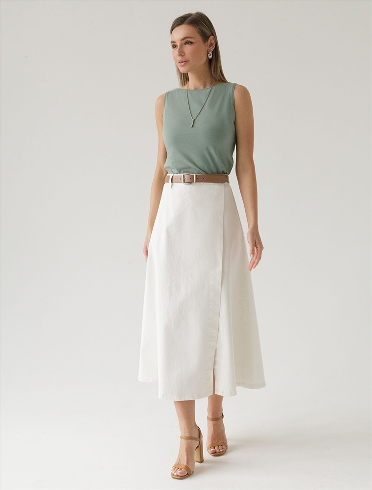 Размер товара на первом фото: 42 Юбка А-силуэта с застежкой на запАх выполнена из эластичного денима. Модель свободного кроя с посадкой на талии. Застежка на две пуговицы. Мягкий эластичный деним обеспечит комфорт и свободу движений. Хорошо сочетается с любым верхом и разной обувью.