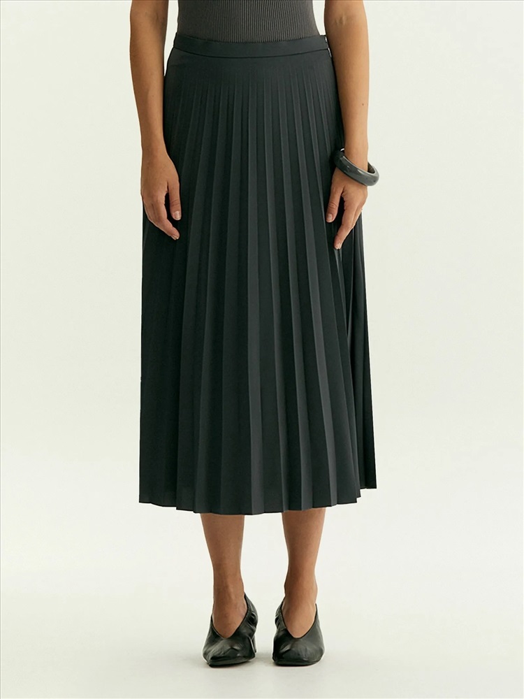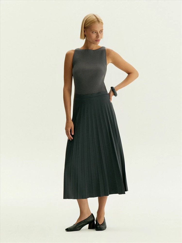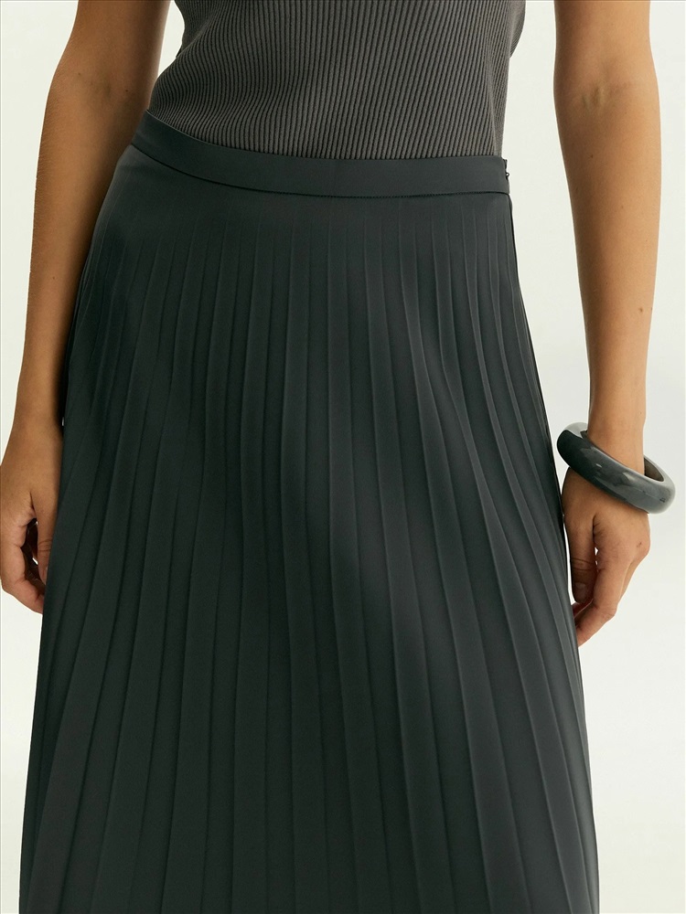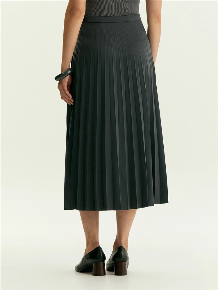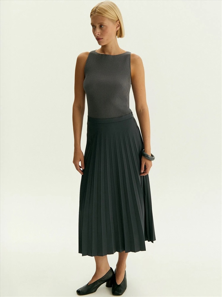 Юбка в цвете графита для стильных образов к любому случаю. Модель высокой посадки в длине миди элегантна и универсальна. Крупная плиссировка сохраняет актуальность в этом сезоне. Сочетать юбку можно с базовыми рубашками, нарядными блузами. Отличным выбором будут классические блузы из шелка.