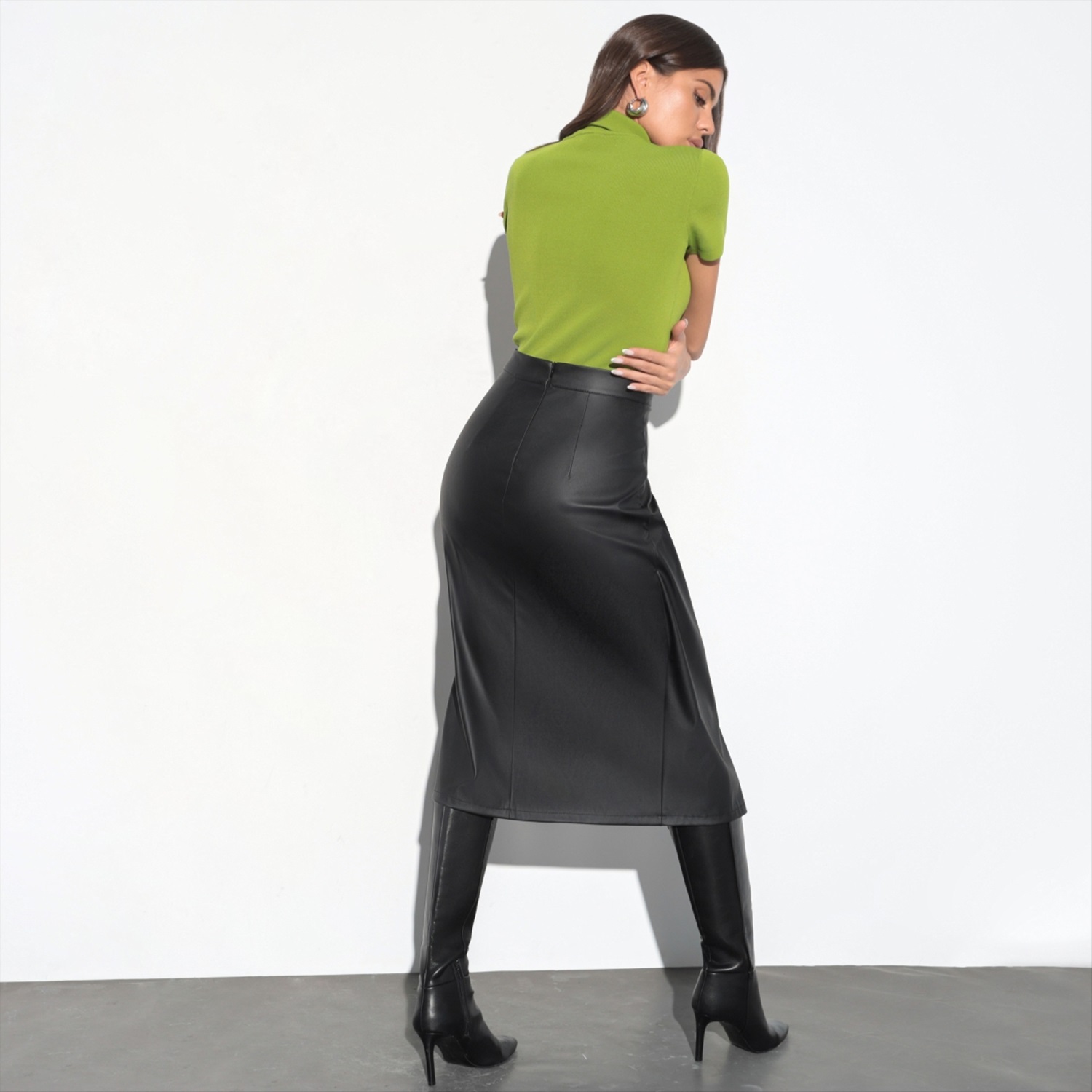 Состав: «Экокожа» (55% п/у волокно, 45% полиэстер) Плотность ткани: Средняя Тип ткани: Текстиль Вид застежки: Молния Карманы: Нет Основной цвет ткани: Черный Отрезная талия: Нет Подклад: Нет Резинка по талии: Нет Рисунок/раппорт: Нет, все изделия идентичны Сезон: Демисезон Силуэт: Приталенный Стиль: Деловой Фасон юбки: Карандаш Фасон юбки: Карандаш Параметры модели на фото: