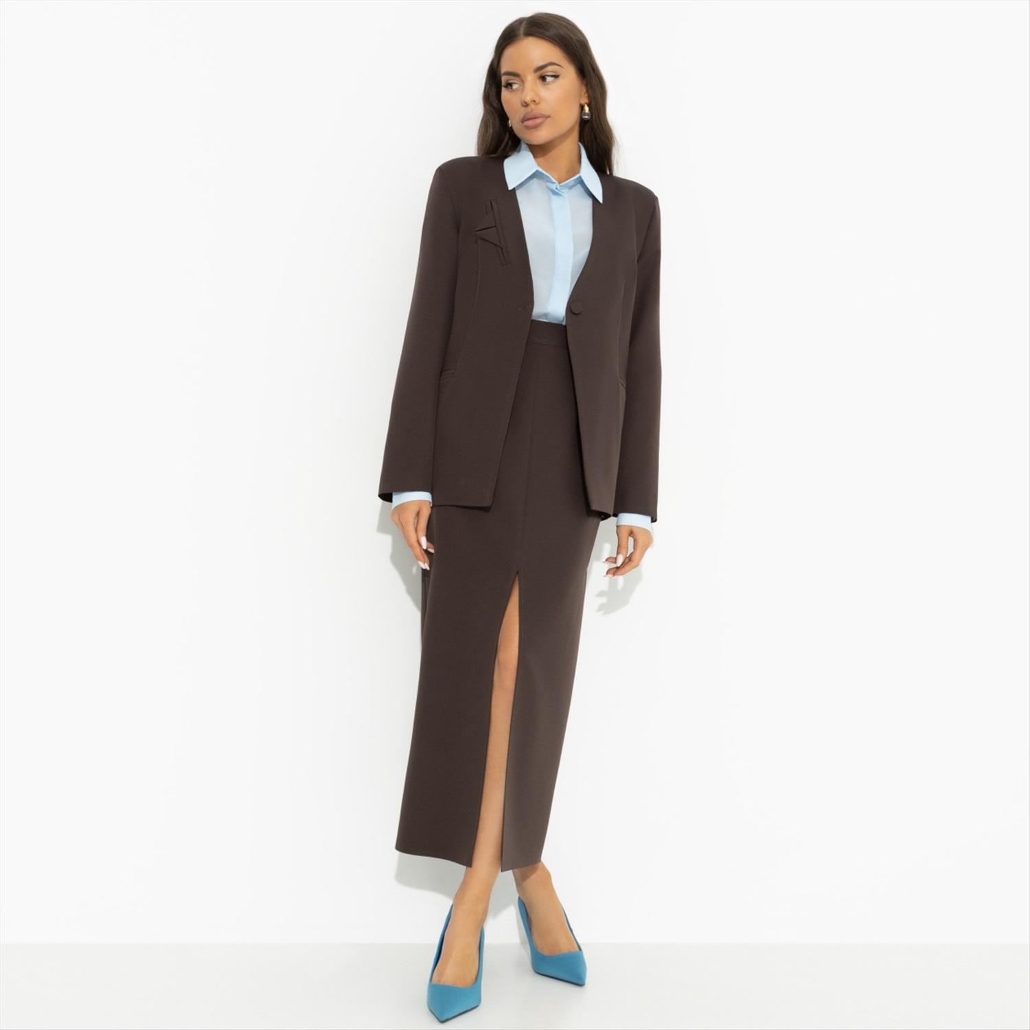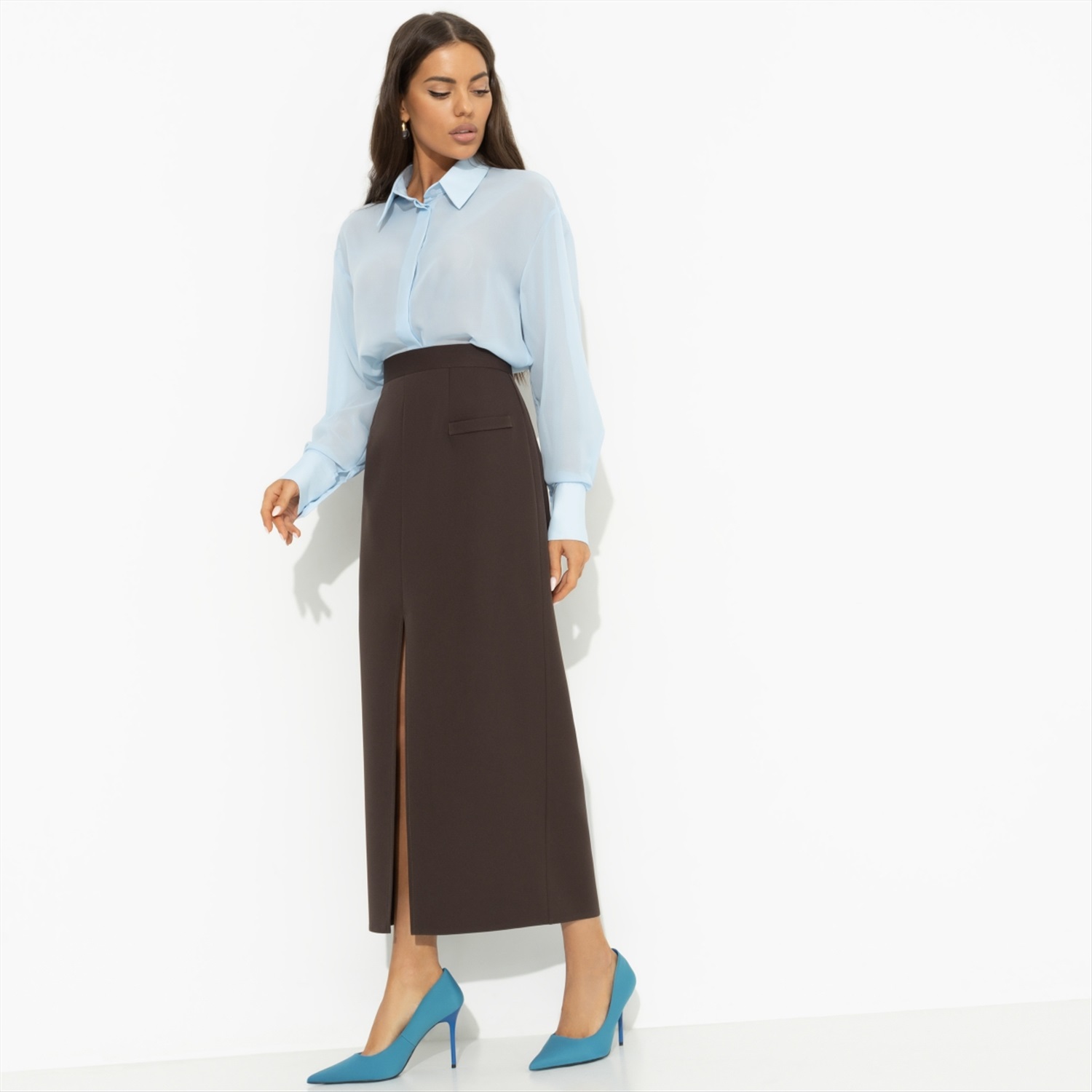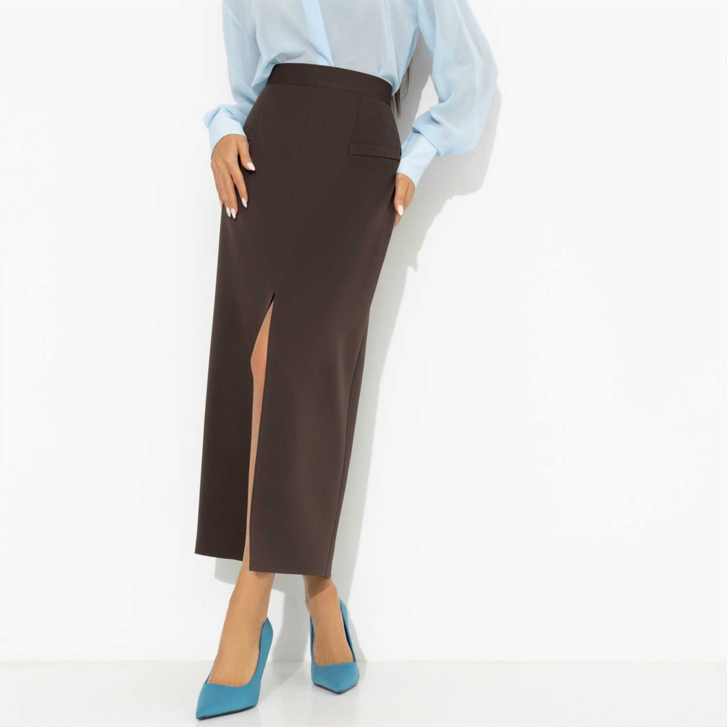Юбка с разрезом «Дерзкая элегантность (коричневая)» из ткани «Барби» предлагает уникальное сочетание стиля и функциональности, которое идеально подходит для тех, кто ценит качество и изысканность в каждой детали. Эта юбка прекрасно подойдет для корпоративных мероприятий, деловых встреч и повседневной офисной жизни, помогая создать образ, который будет вдохновлять доверие и уважение. Оптовая покупка этой модели — это не только выгодное вложение в гардероб, но и способ подчеркнуть свою приверженность к стилю и элегантности. Высокая посадка и разрез спереди добавляют изюминку, превращая каждое ваше появление в настоящую демонстрацию уверенности. Для тех, кто стремится к созданию гармоничного корпоративного стиля, юбка «Дерзкая элегантность» станет незаменимым элементом гардероба. Имитация карманов и скрытая молния делают её практичной и удобной в носке, а элегантная длина миди — идеальной для создания строгого, но женственного образа. Оптовое приобретение этой юбки — это возможность для владельцев модных бутиков и корпоративных клиентов предложить своим клиентам или сотрудникам продукт высокого качества, который подчеркнет их статус и вкус. Сочетание с другими элементами делового гардероба открывает безграничные возможности для создания уникальных и стильных ансамблей. Если вы ищете способ предложить своим клиентам или сотрудникам продукт, который станет настоящим символом уверенности и стиля, оптовая покупка юбки «Дерзкая элегантность (коричневая)» станет вашим лучшим решением. Ткань «Барби» отличается своей мягкостью и долговечностью, обеспечивая максимальный комфорт в течение всего дня. Приталенный силуэт и разрез спереди придают изделию дерзкий характер, который будет выделять вас из толпы. Эта юбка — не просто элемент одежды, это — выражение вашей индивидуальности и стремления к совершенству. Комментарии к товару