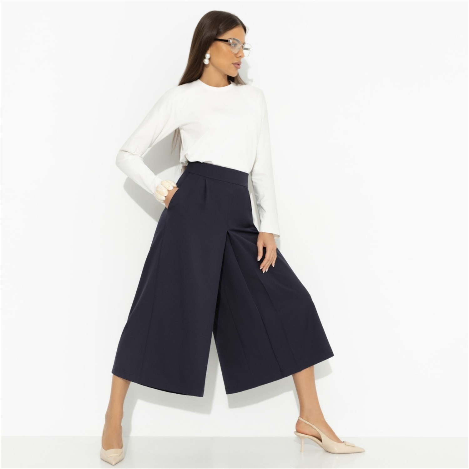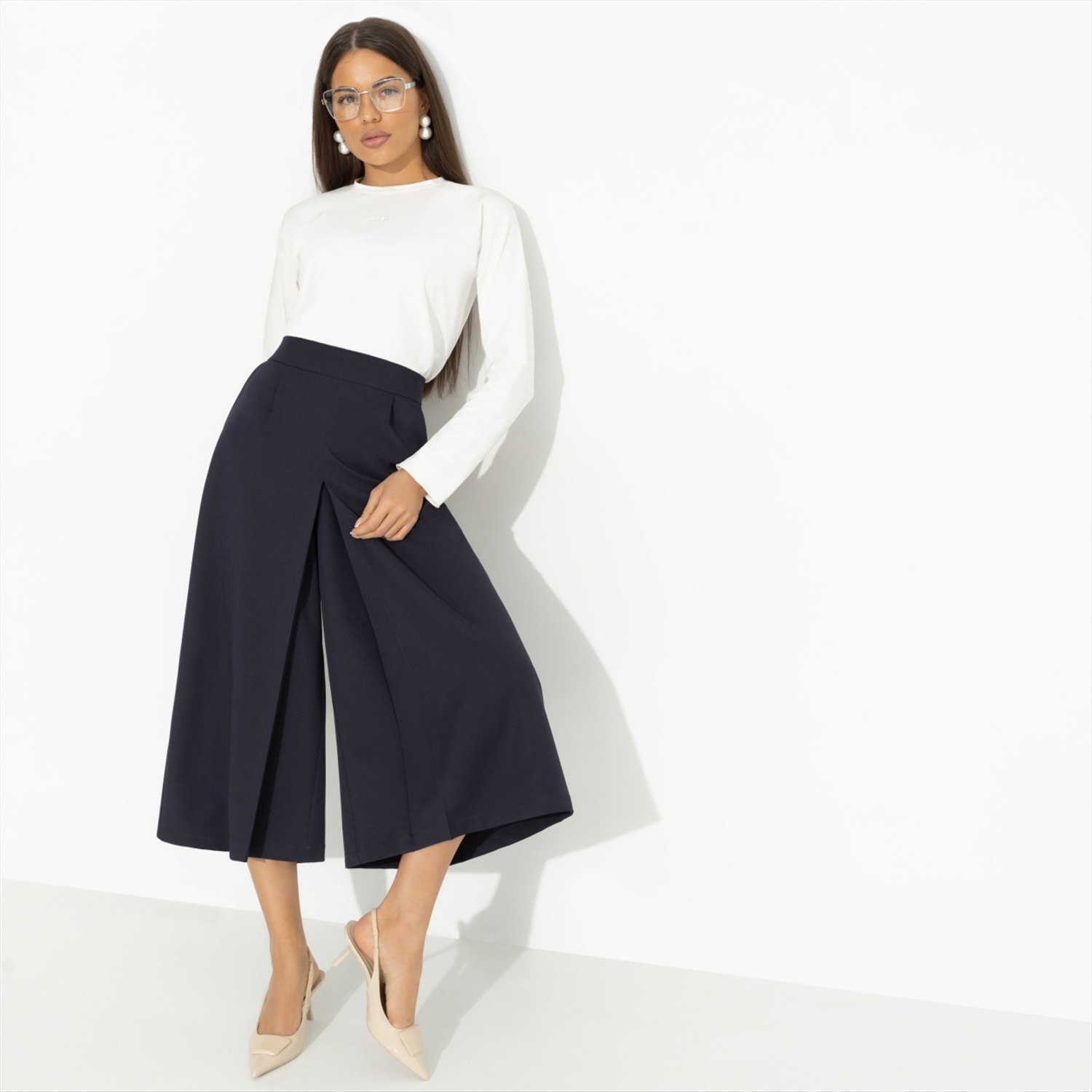Состав: Костюмная ткань «туран» (95% полиэстер, 5% эластан) Плотность ткани: Средняя Тип ткани: Текстиль Вид застежки: Молния Высота посадки: Средняя Дополнительный цвет ткани: Черный Карманы: В боковом шве Основной цвет ткани: Синий Отрезная талия: Есть Подклад: Нет Резинка по талии: Нет Рисунок/раппорт: Нет, все изделия идентичны Сезон: Круглогодичный Силуэт: Свободный Стиль: Классический Фасон юбки: Юбка-шорты Фасон юбки: Юбка-шорты Параметры модели на фото: