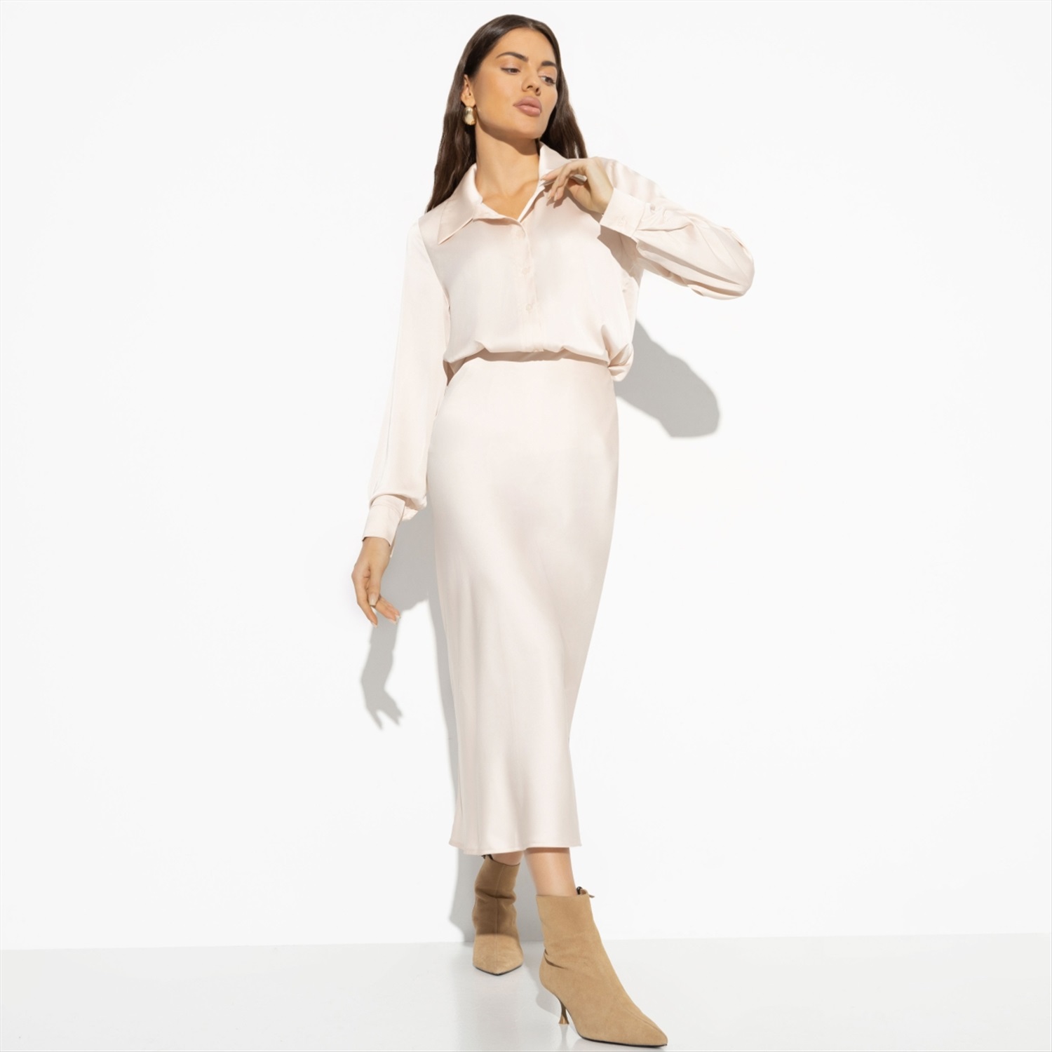 Состав: Шелк-стрейч "Бавария" (97% полиэстер, 3% спандекс) Плотность ткани: Тонкая Тип ткани: Текстиль Вид застежки: Резинка Карманы: Нет Основной цвет ткани: Бежевый Отрезная талия: Нет Подклад: Нет Резинка по талии: Нет Рисунок/раппорт: Нет, все изделия идентичны Сезон: Круглогодичный Силуэт: Свободный Стиль: Повседневный Фасон юбки: Годе Фасон юбки: Годе Параметры модели на фото: