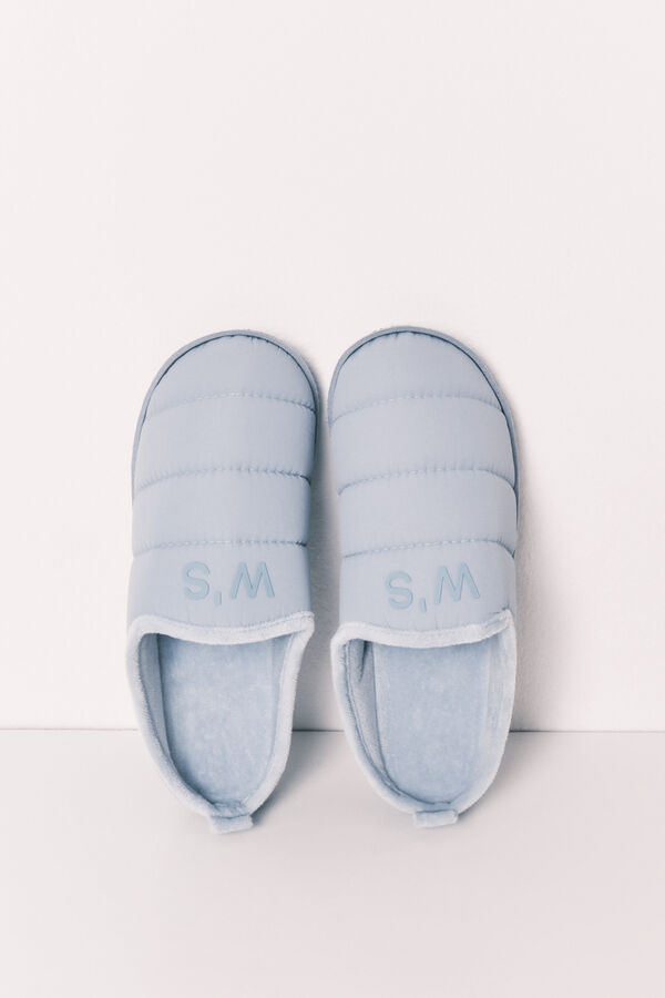 Zapatillas de estar en casa tipo "slippers", acolchadas, con suela de goma antideslizante. Ideales para estar cómoda en casa. Llévalas a juego con el neceser de la colección.