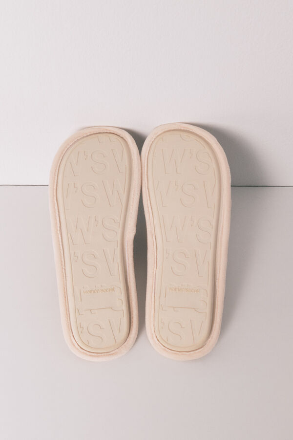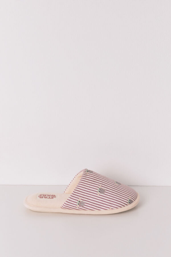 Zapatillas de estar en casa tipo ducha. Confeccionadas en tejido de velour, con estampado de rayas y detalle de Grogu. Licencia de Star Wars. Llévalas a juego con un pijama de la colección.
