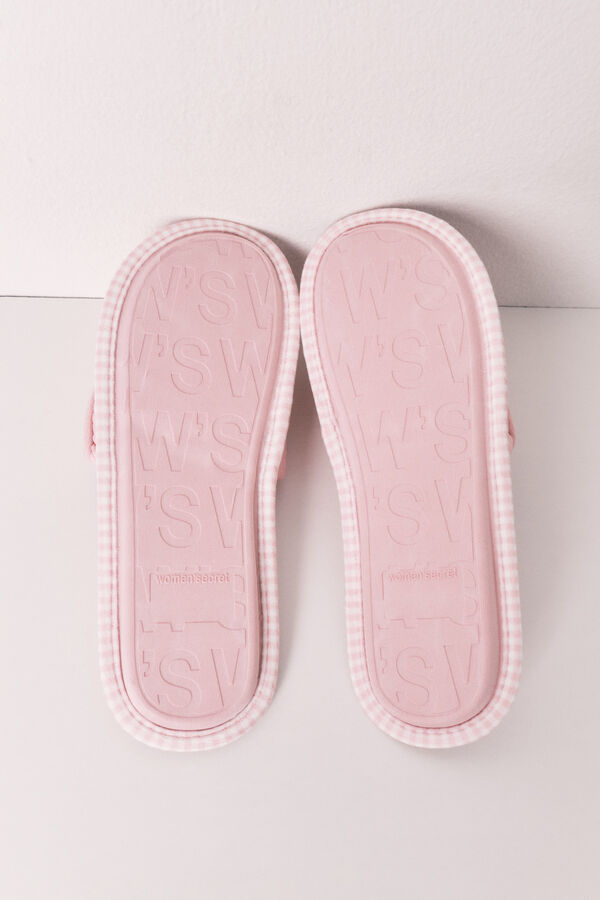 Zapatillas de estar en casa abiertas en color rosa, con textura en la pala y con detalle de divertido posicionado en la suela interior de Sanrio (Hello Kitty, Keroppi & Cía). Llévalas a juego con un pijama de la colección.