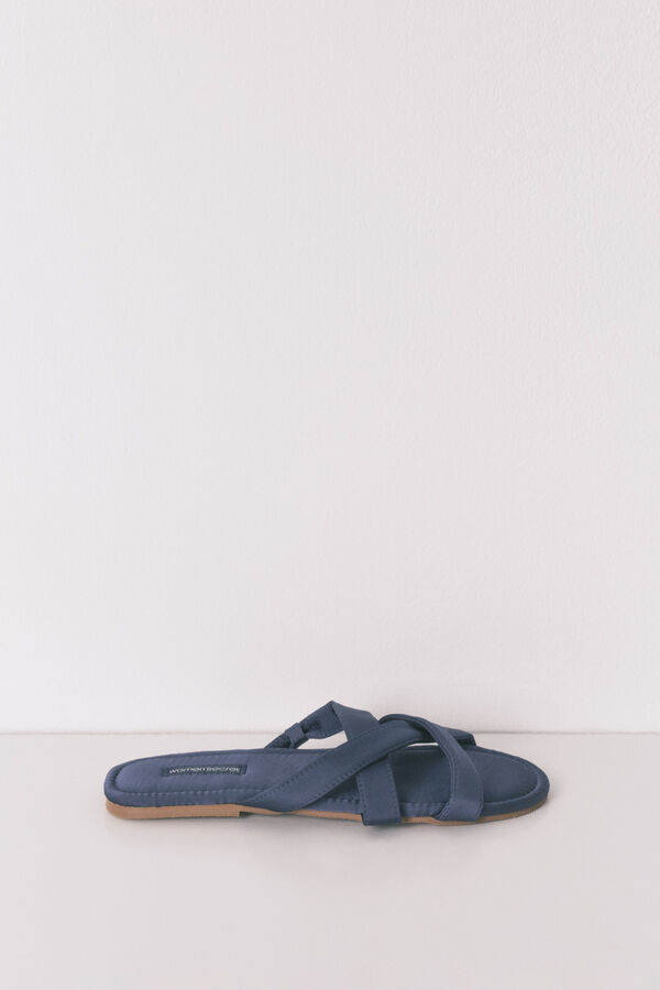 Zapatillas de estar en casa azules efecto satén, con detalle de tiras cruzadas. Ideales para estar en casa cómoda, sin perder tu toque personal de estilo.