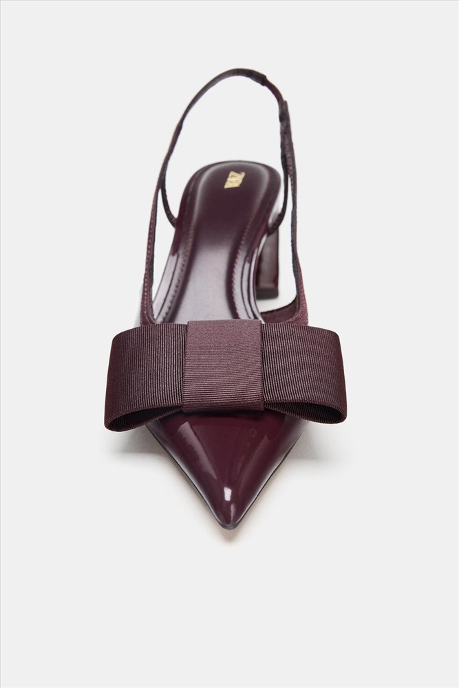 Slingback shoes with block heels. Faux patent finish. Bow detail on the front. Back strap. COMPOSITION, CARE & ORIGIN COMPOSITION UPPER 80% polyurethane LINING 68% polyester SOLE 100% polyurethane thermoplastic INSOLE 100% polyurethane