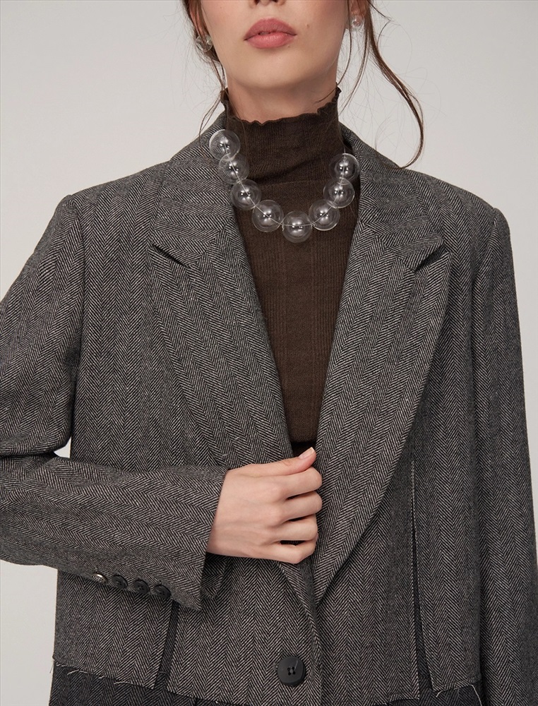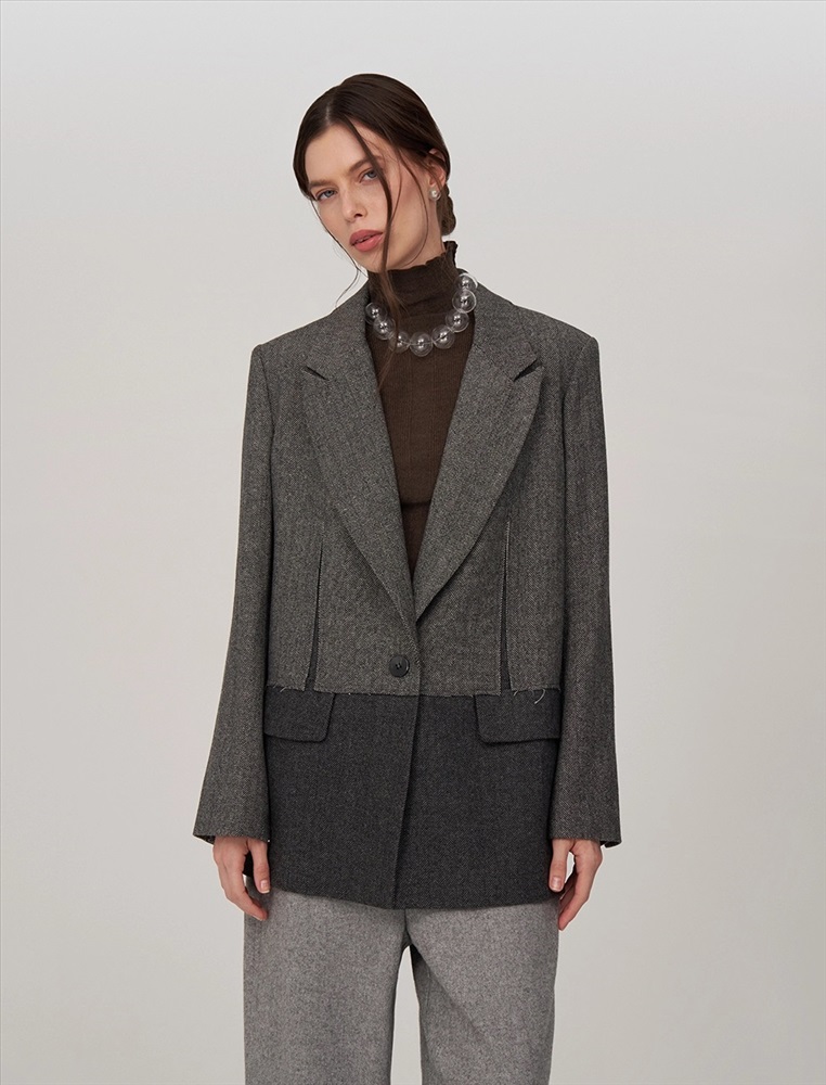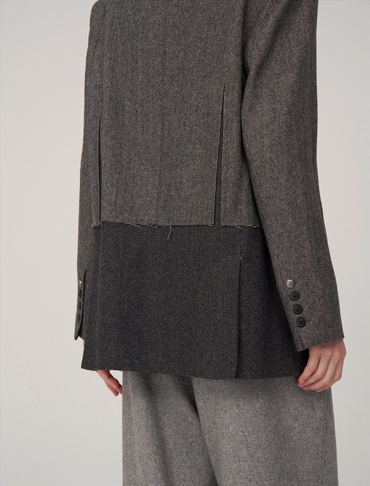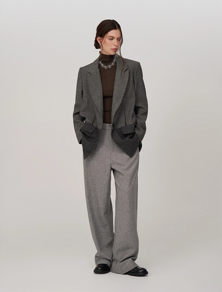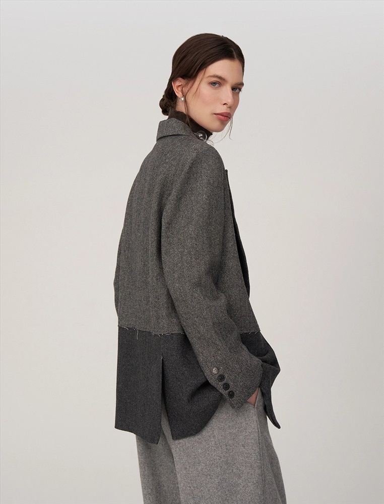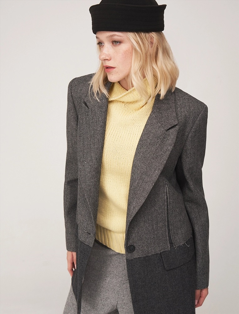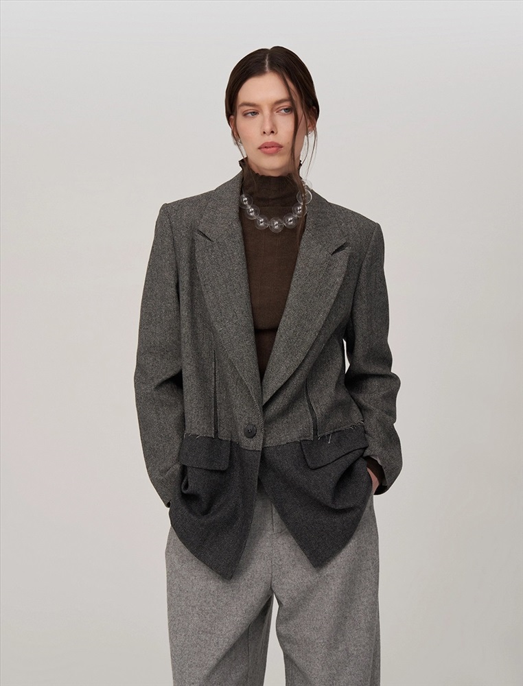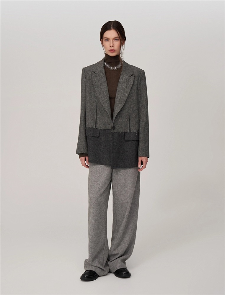 Видео: https-//hassfashion.ru/upload/iblock/20a/3k7n6esjn83i69obt74e46ir4ko0ucbz.mp4 осень-зима А: 80% Шерсть, 20% Терилен; В: 100% Полиэстер Жакет прямого силуэта, с втачным рукавом. По передней части изделия — широкие лацканы, застежка на пуговицу и карманы с клапанами. Наслоение одной ткани на другую, разрезы и открытые срезы создают гранжевый эффект. На подкладке — уникальный рукописный принт.