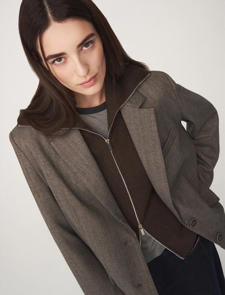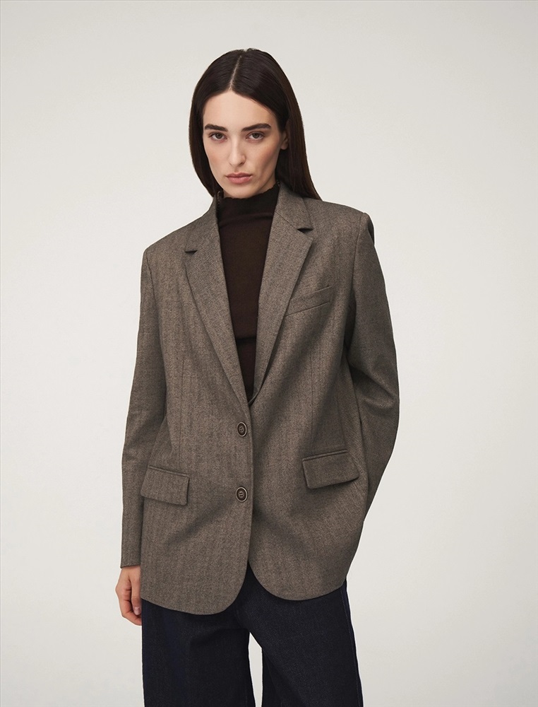 Видео: https-//hassfashion.ru/upload/iblock/3e2/7qkde353h8z6b4jzl81hx25lboryfz74.mp4 осень-зима А: 50% Хлопок, 30% Шерсть, 20% Полиэстер; В: 100% Полиэстер Однобортный жакет прямого силуэта. По передней части — лацканы, застежка на пуговицы, нагрудный врезной карман с листочкой и два кармана с клапанами. Углы бортов закруглены. Спинка жакета прямая, без шлицы. Ткань верха выполнена из хлопка, шерсти и полиэстера. Представлен в серо-коричневом оттенке.
