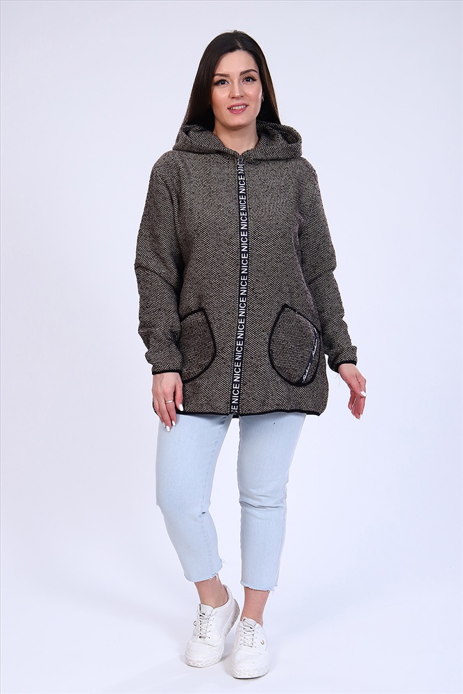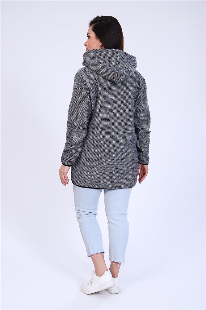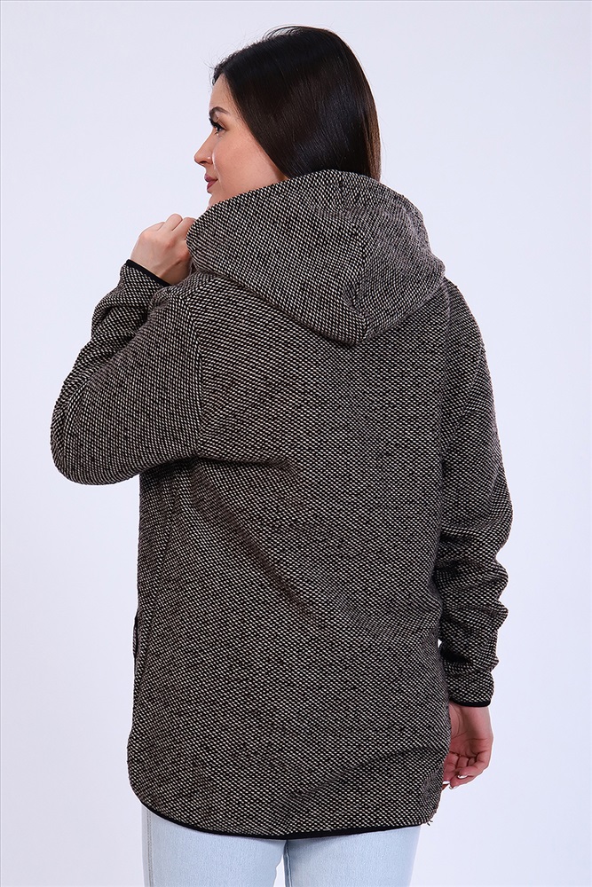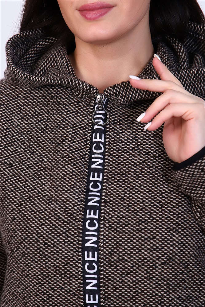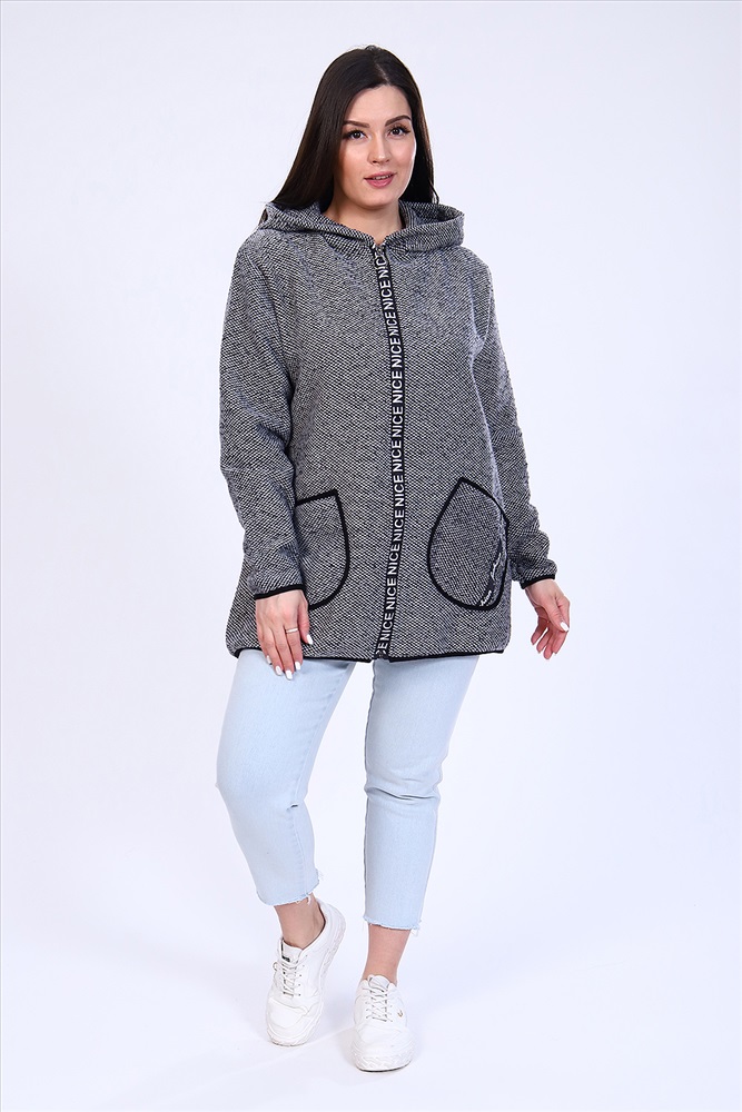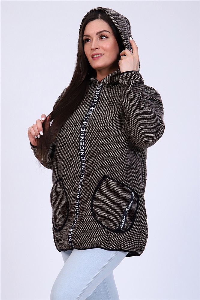 Застежка: молния Жакет женский на молнии с капюшоном и карманами. На карманах модный принт.Теплый и удобный.
