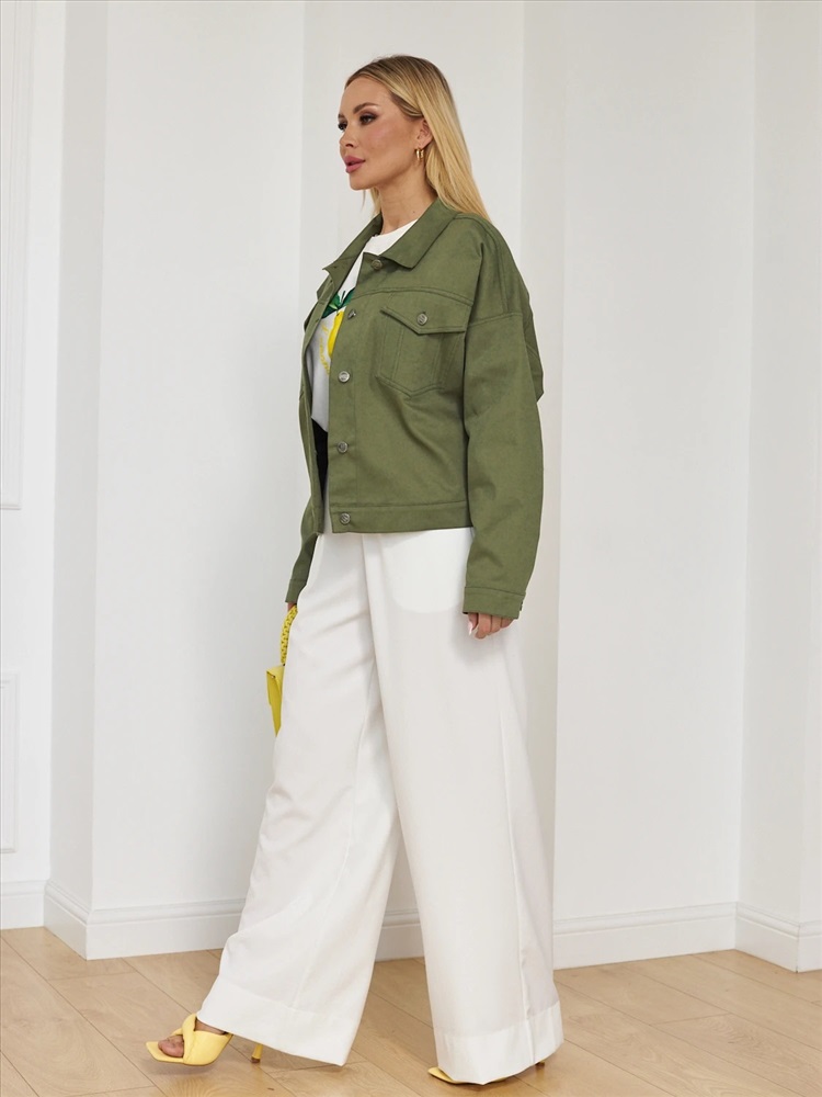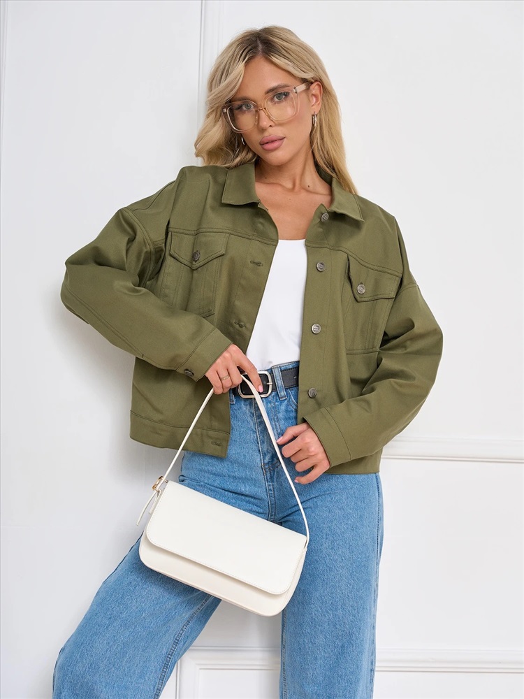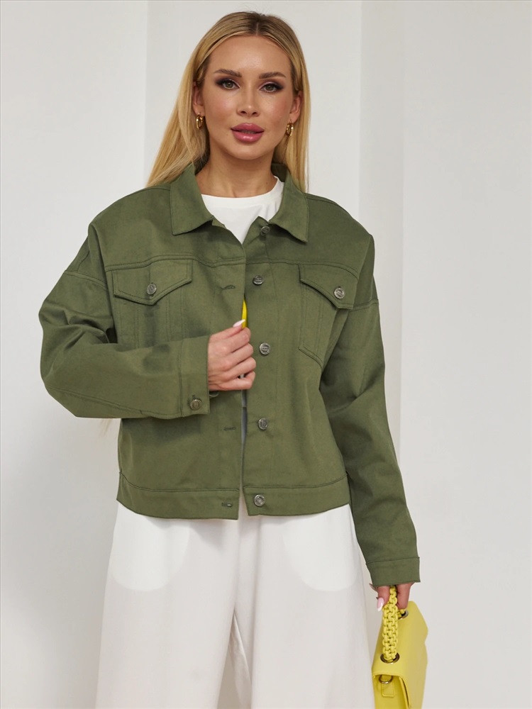 Джинсовая куртка с отложным воротником.