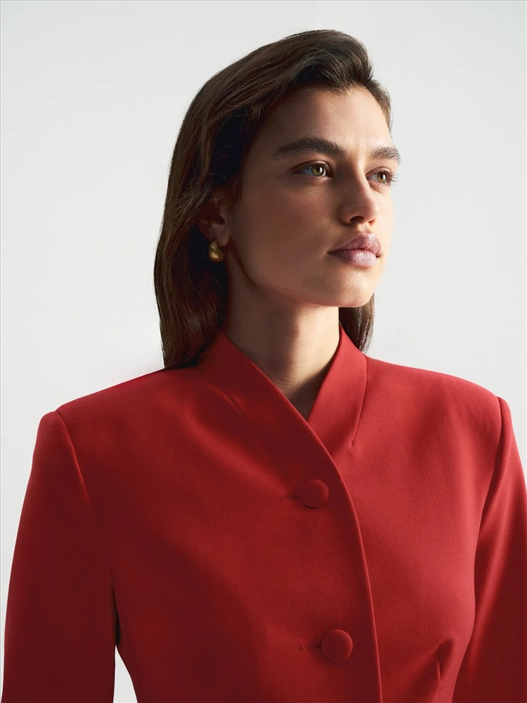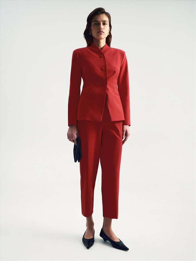 Жакет в красном цвете станет универсальным решением к будням, выходным и праздникам.