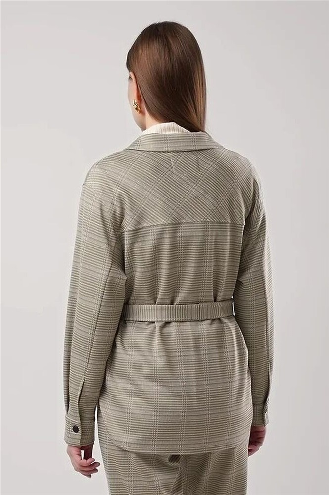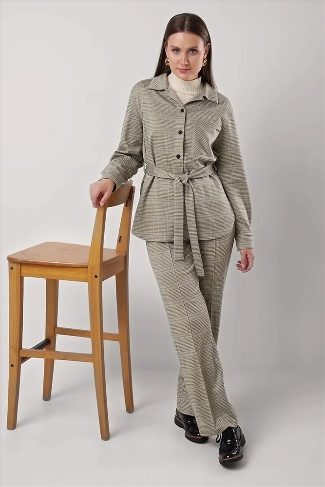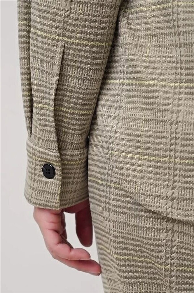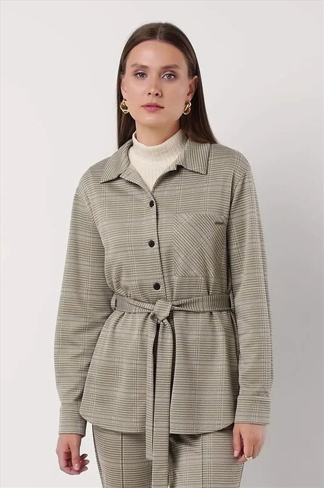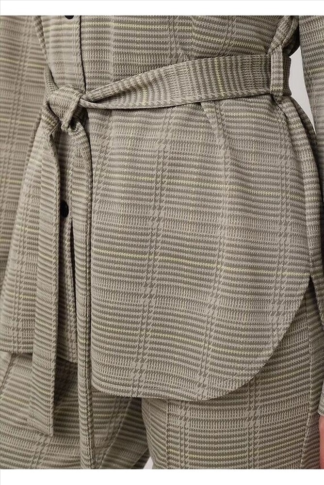 ID товара: 1199084 Состав: 86% Полиэстер, 12% Вискоза, 2% Эластан Сезон: Осень/Зима Длина: Средняя Фасон: Прямой Рукав: Длинные Вид застежки: Пуговицы Вырез горловины: Отложной воротничок Рисунок: Гусиная лапка Декоративные элементы: Пояс Основная ткань: Полиэстер Стиль: Повседневный Страна бренда: Россия Страна производства: Россия Жакет из трикотажного поливискозного полотна джерси,с застежкой на пуговицы.Отложной воротник.По талии съёмный пояс,шлевкаи. Втачной длинный рукав, внизу манжет на пуговице.Спереди накладной карман, нашивка металл.По спинке кокетка. Фигурный низ изделия. Комментарии к товару