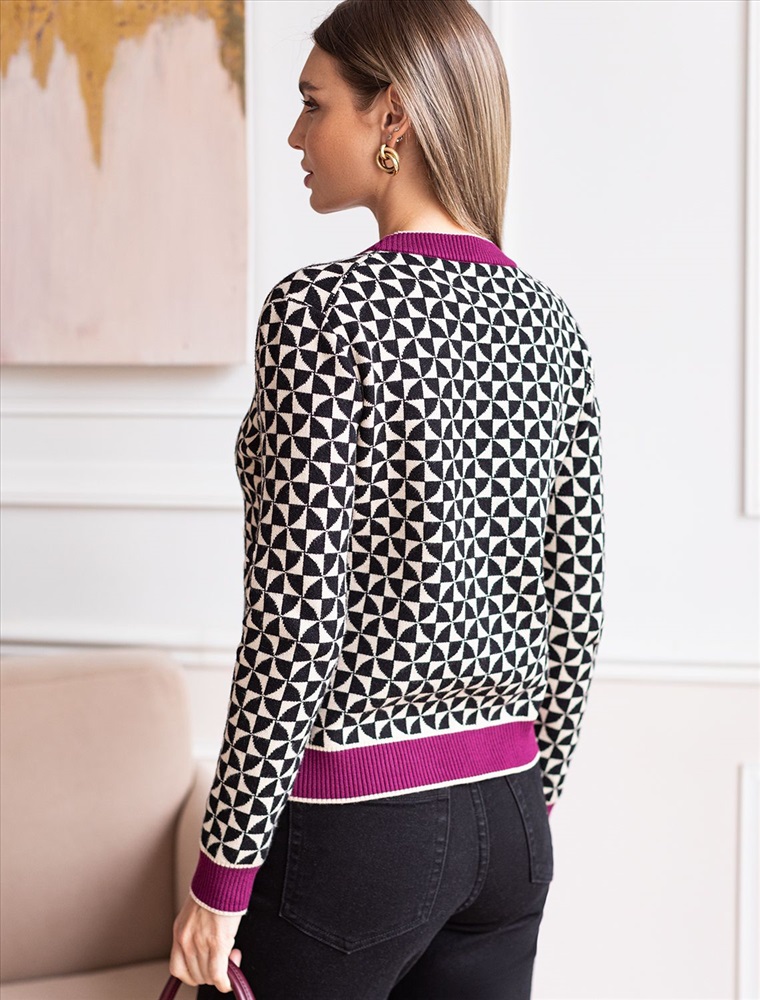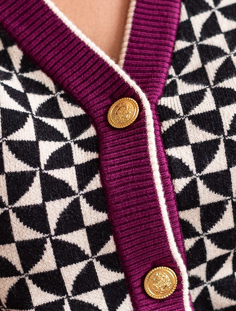Жакет с V-вырезом в стиле «Шанель» жаккардовой вязки выполнен из нежной пряжи на основе вискозы с добавлением кашемира. Мягкая модель с золотистой фурнитурой не раздражает кожу, приятно ощущается на теле и поддерживает комфортный микроклимат. Совет стилиста: сочетайте с однотонными брюками, юбкой, платьем или джинсами. Можно в комплекте total-look с D39.310 и с платьем D32.073