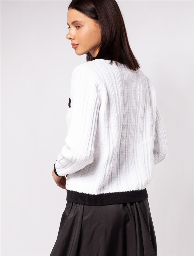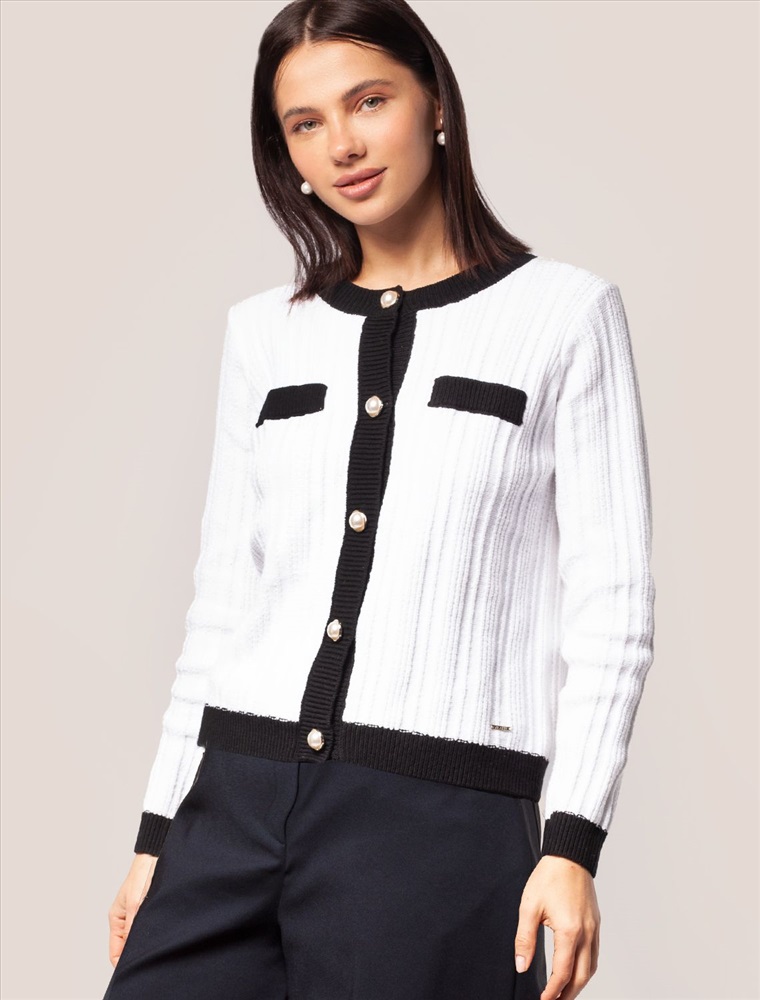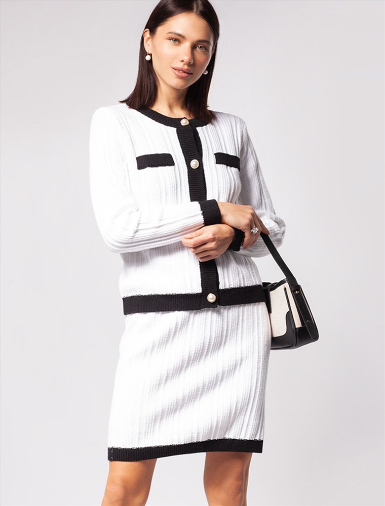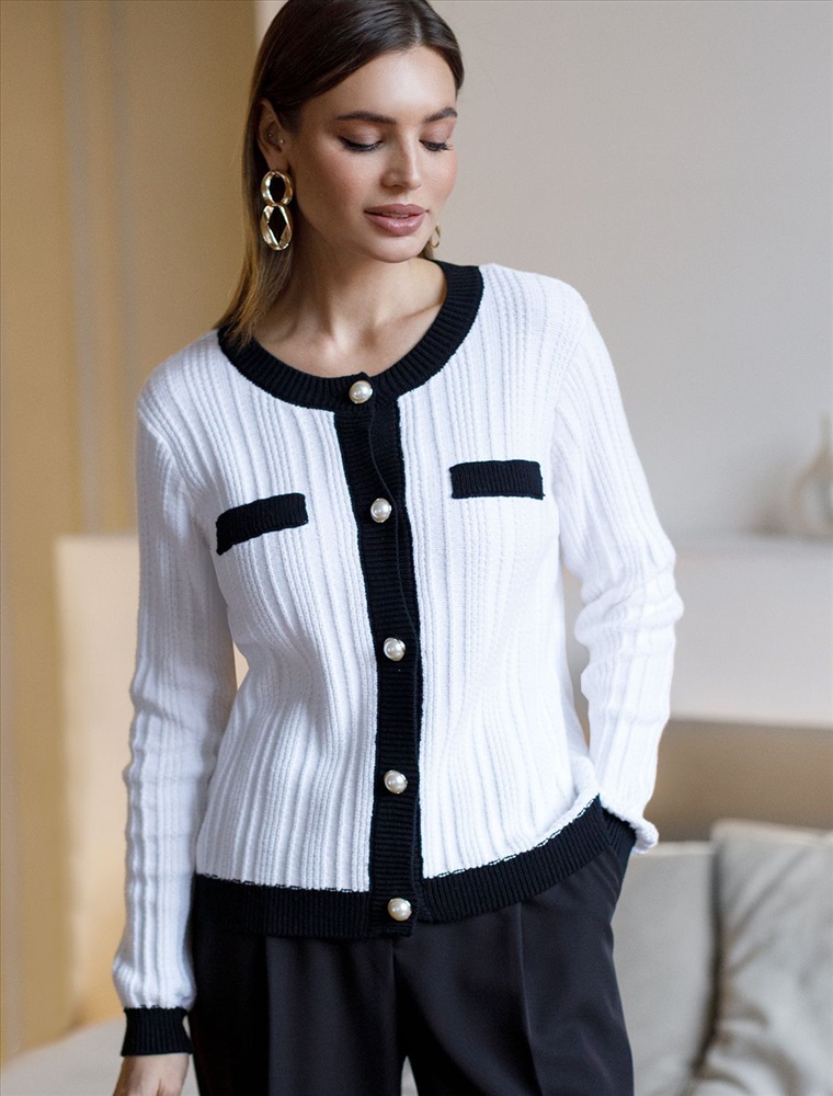 Жакет фактурной вязки выполнен из мягкой хлопковой пряжи с добавлением акрила. Изделие из такого материала исключительно приятно ощущается на коже, поэтому его комфортно носить даже на голое тело. Модель украсили золотистыми пуговицами с жемчужной вставкой. Сочетайте в костюме с юбкой D36.014 чтобы получить завершённый элегантный образ.