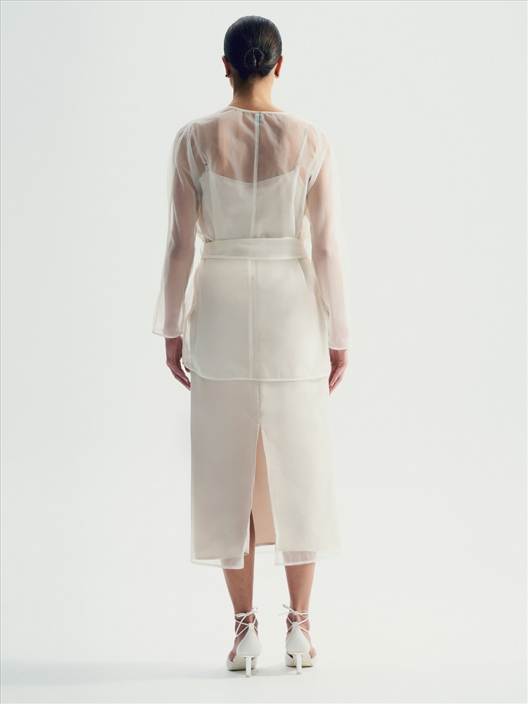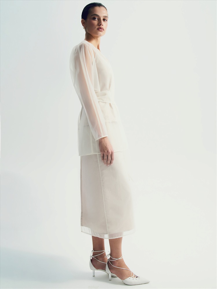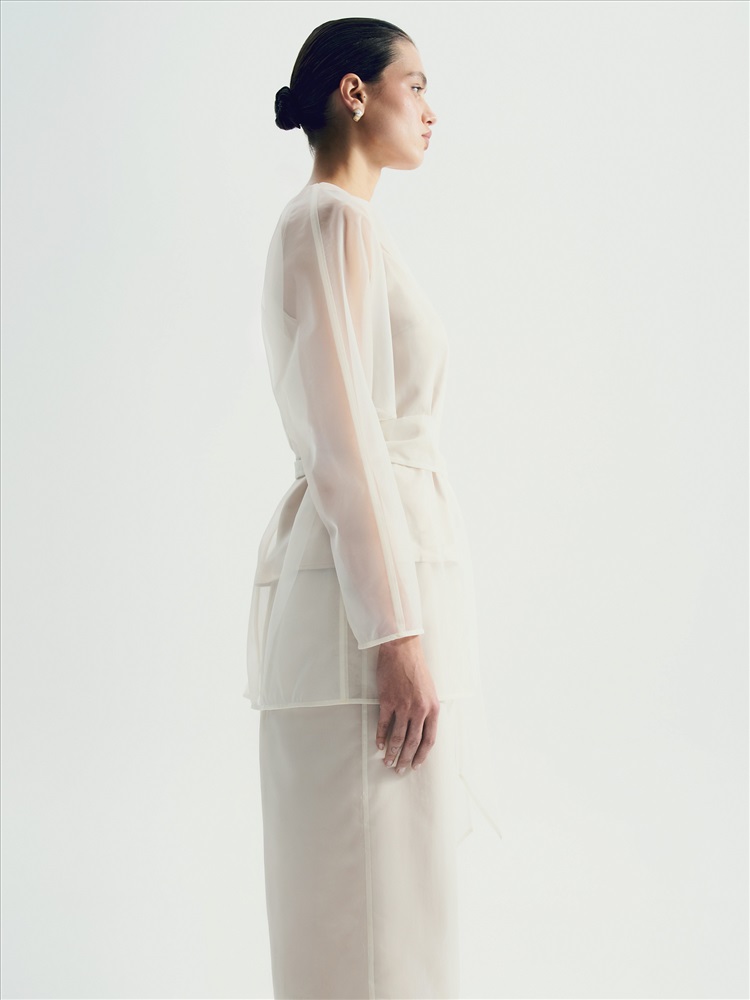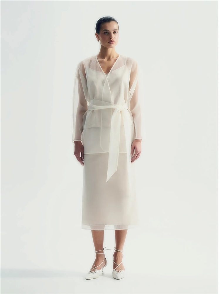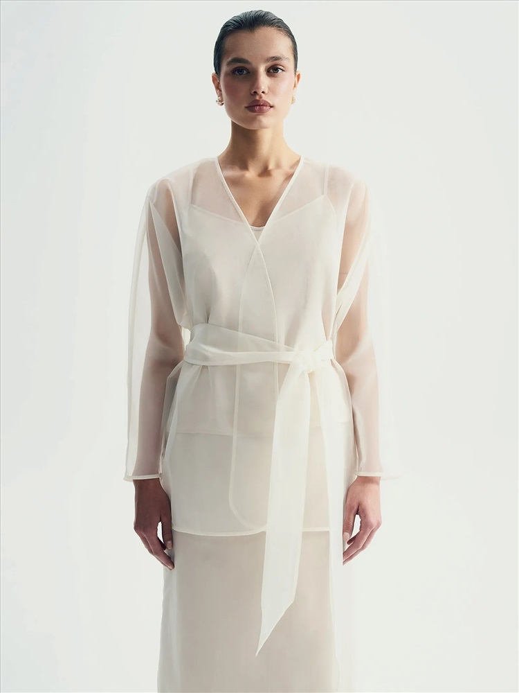 Кимоно в молочном цвете из слегка "хрустящей" плотной органзы подойдёт к празднику и не только. Дополнено широким поясом. Кимоно идёт без топа в комплекте, но подойдёт к любому топу в вашем гардеробе. Трендовая вещь с восточными мотивами на современный лад отлично дополнит образы с денимом, базовыми и нарядными топами, платьями-комбинациями. Широкая пройма даёт свободу движений, что особенно удобно для вечеринок и повседневных активностей.