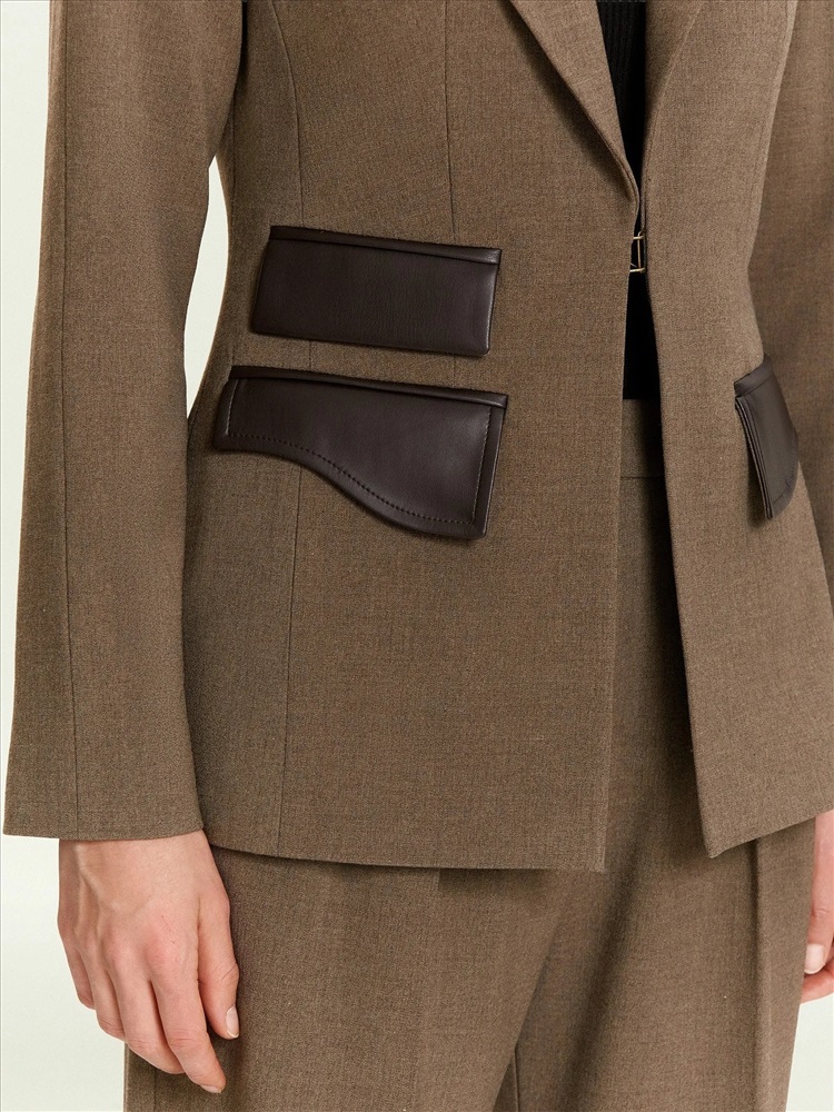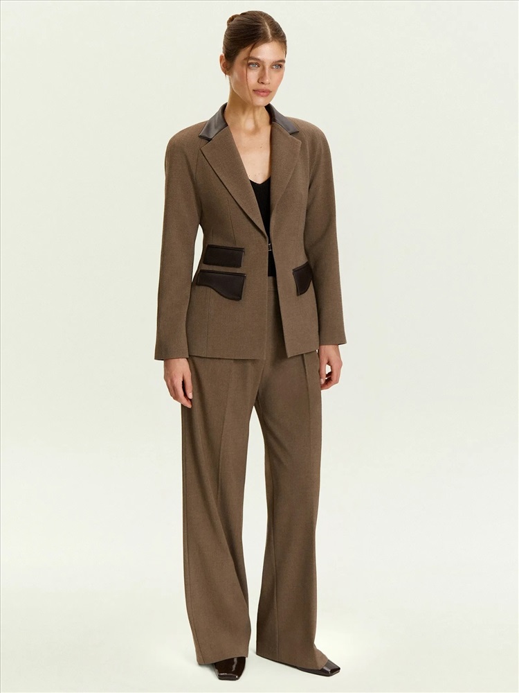Оригинальный жакет для разнообразных и трендовых образов на каждый день. Приталенный жакет с широкими лацканами дополнен кожаными накладками-клапанами: прямоугольными и фигурными. Модель застёгивается на удобный крючок. Изделие выполнено на подкладке с высоким содержанием вискозы.