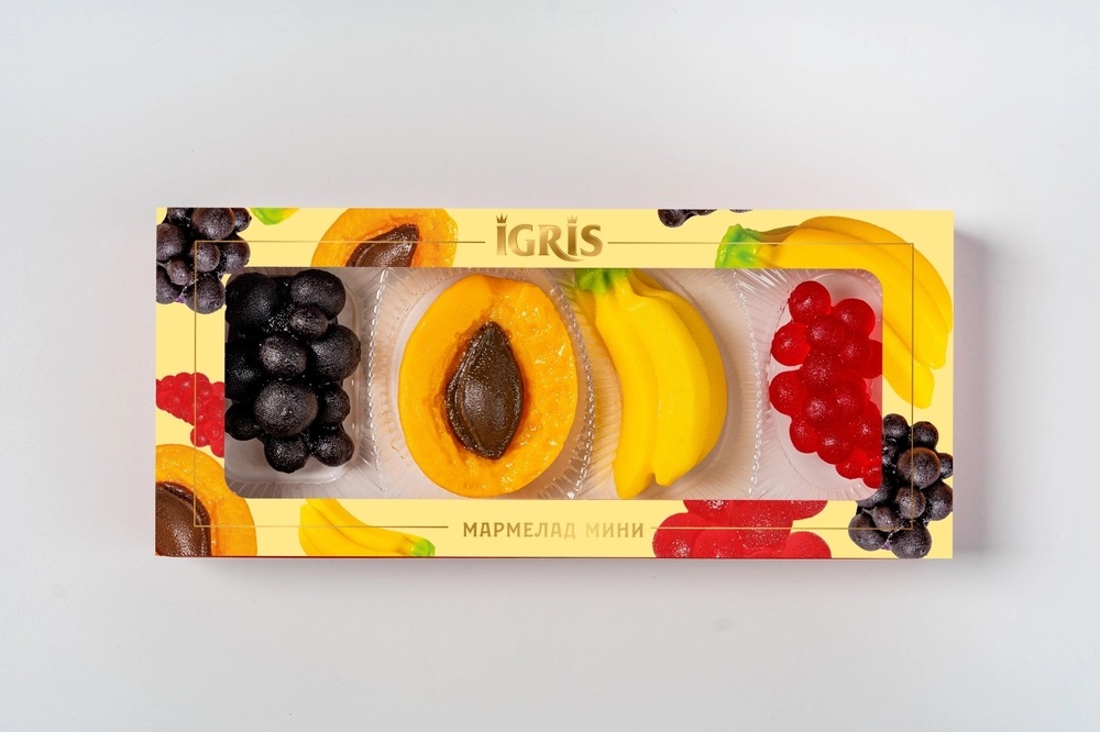 Этот набор мармелада является мини-версией нашего популярного в России и странах СНГ мармеладного набора “GOLD”. Всё те же великолепные вкусовые характеристики, дизайн упаковки и внешний вид. Каждая мармелада имеет соответствующие каждому фрукту форму, расцветку, вкус и аромат. Такой мини-набор всегда удобно взять с собой для перекуса, угостить друзей, порадовать родных и близких. В набор входят следующие фрукты из мармелада: красная смородина, абрикос, банан и черная смородина.