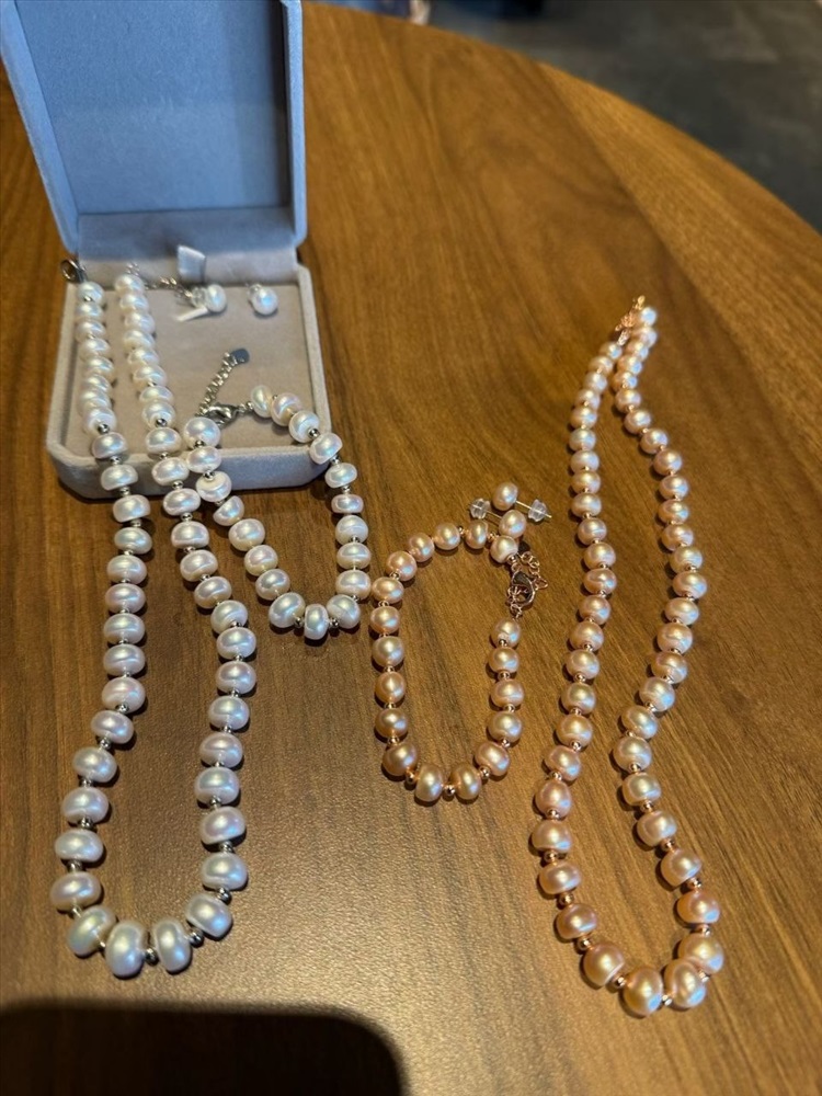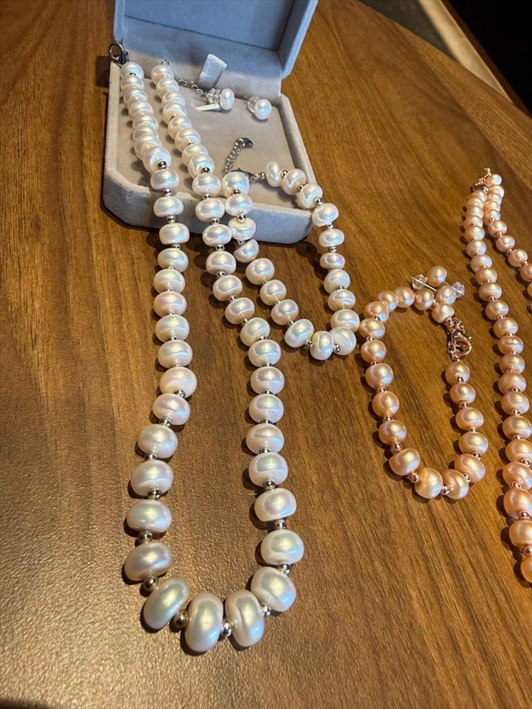 Жемчужный набор из 3-х предметов бусы+браслет+серьги