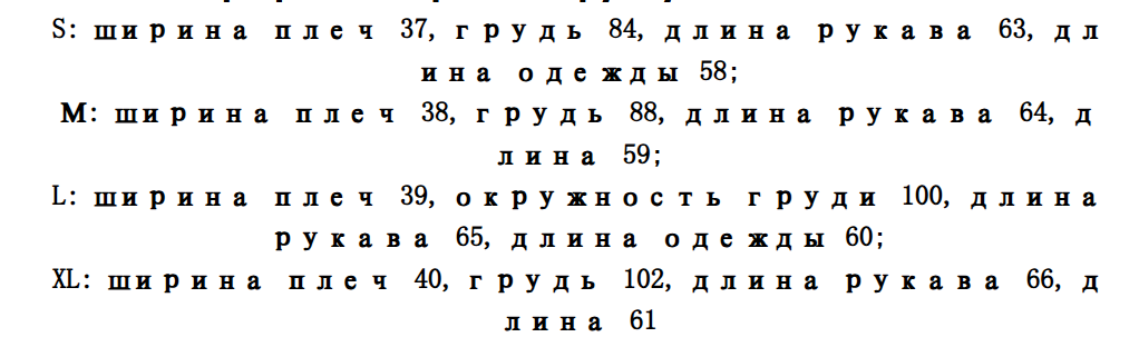 Размер: S, M, L, XL