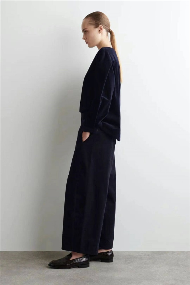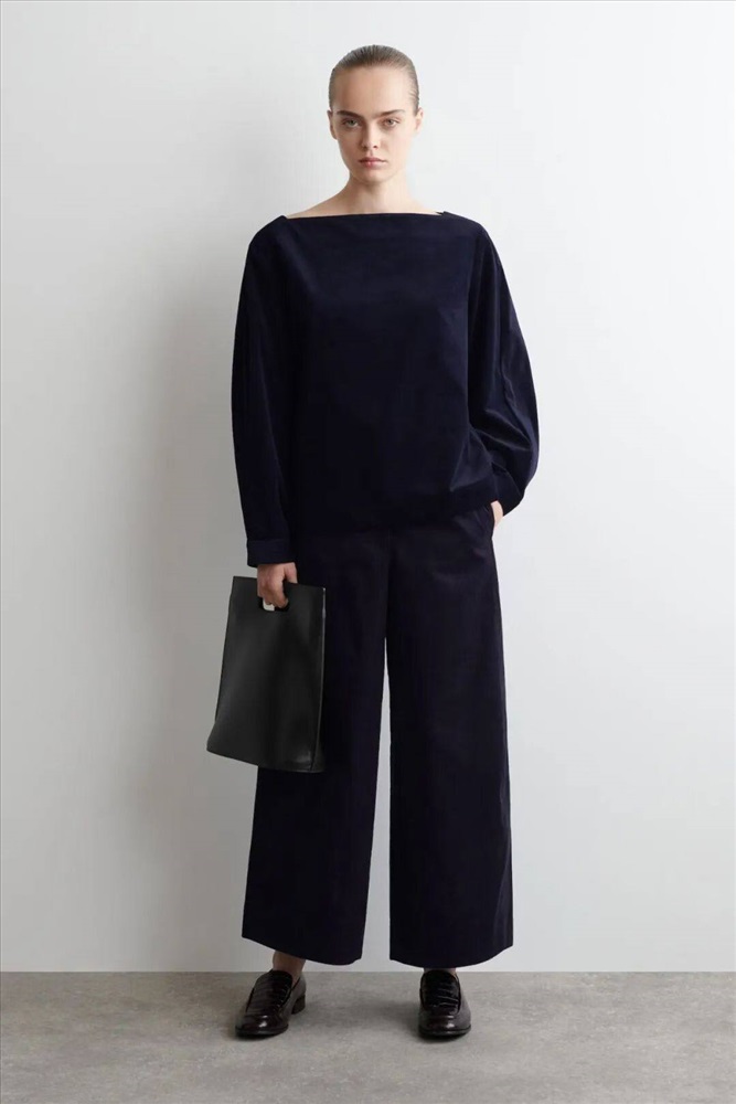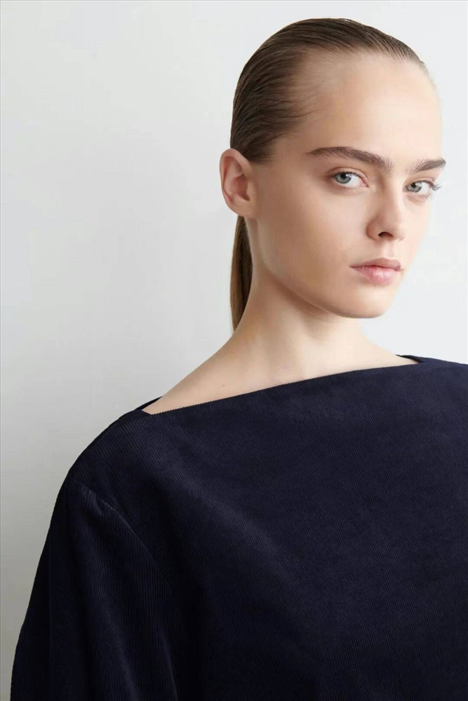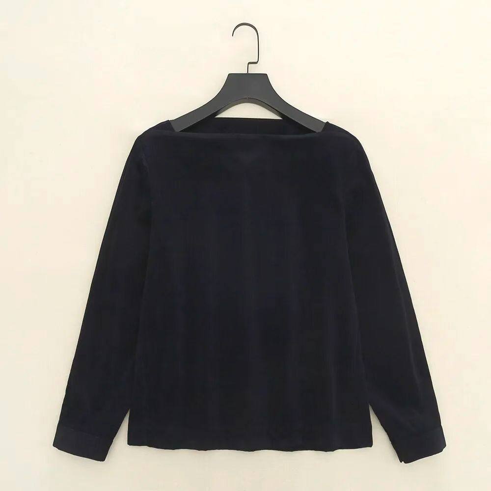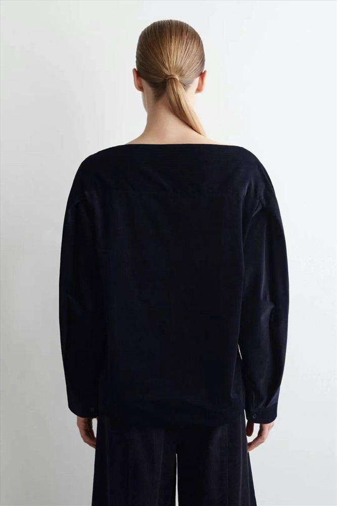 Женская цельная рубашка из тонкого вельвета с вырезом-лодочкой КО*С