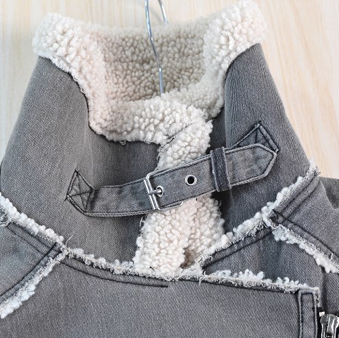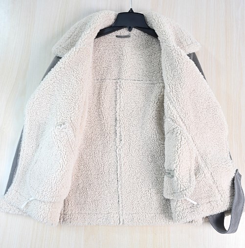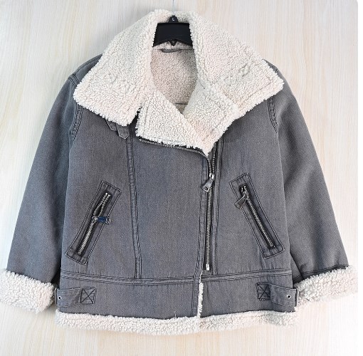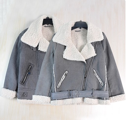 Материал: Этикетка отрезана Ткань представляет собой композитный материал с саржевым переплетением джинсовой ткани и текстурированной изнанкой из искусственной овечьей шерсти. Изделие плотное и тёплое на ощупь, а также выглядит стильно. Слегка свободный крой делает изделие теплым, но не громоздким. Куртка застегивается на молнию с наклонным расположением по центру и оснащена кожаным воротником-петлей, что позволяет носить ее как воротник-стойку, когда становится холодно. Два наклонных боковых кармана с застежкой-молнией Ремень съемный. Комментарии к товару