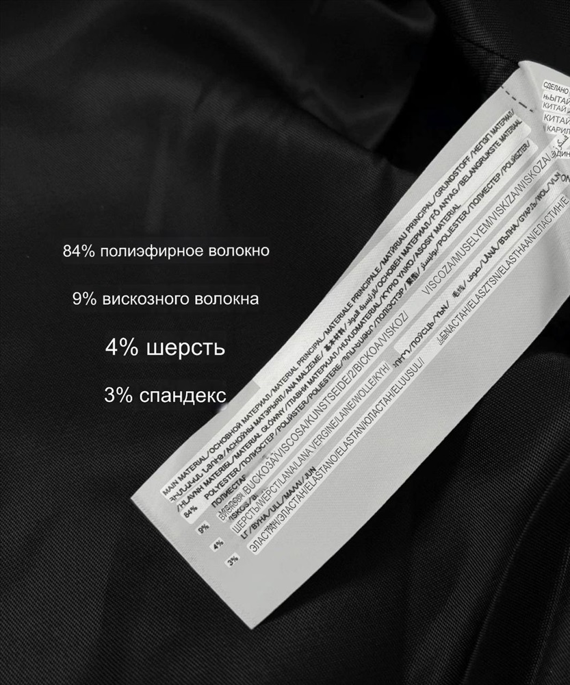 Материал: 84% полиэфирное волокно 9% вискоза 4% шерсть 3% спандекс