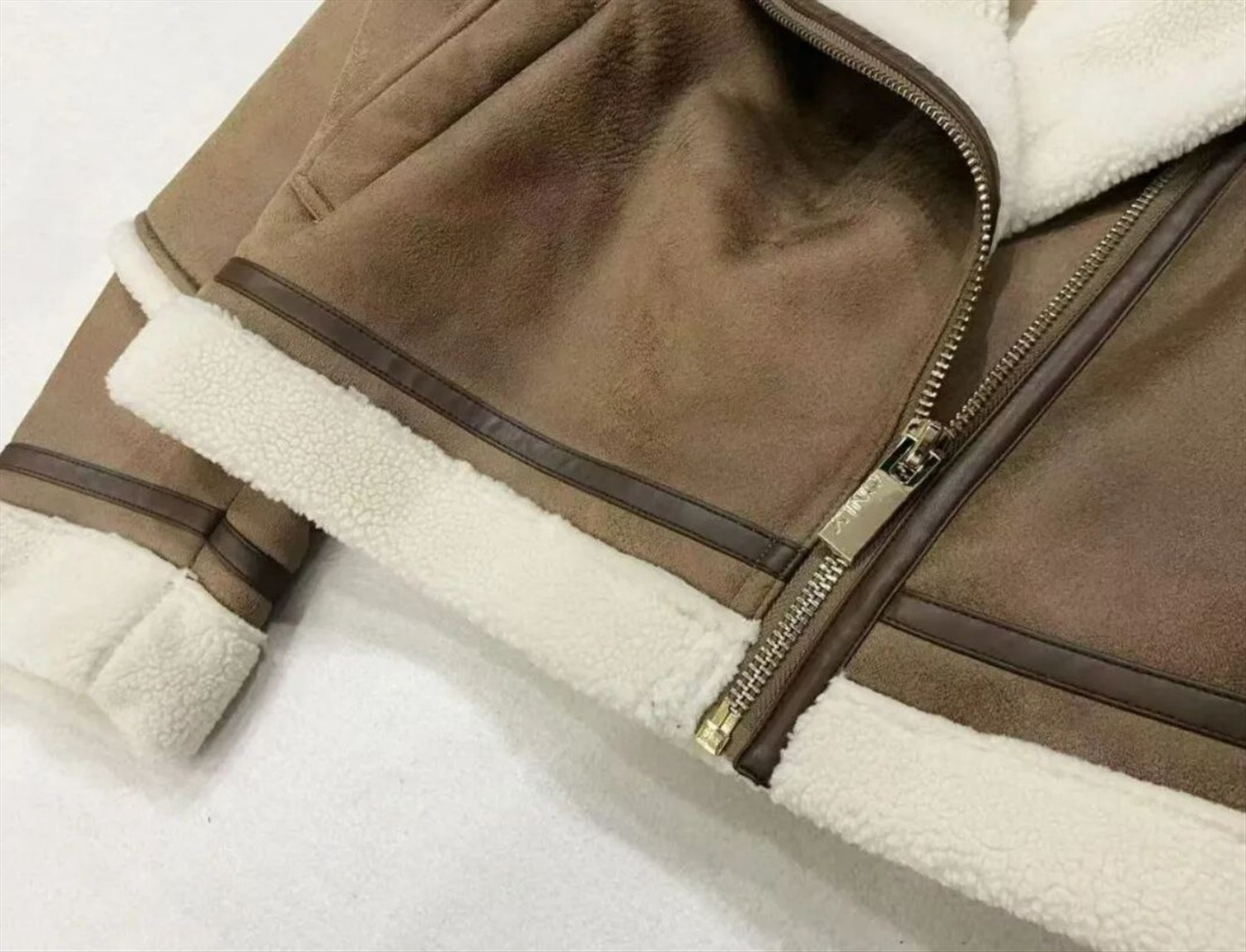 Женская куртка в мотоциклетном стиле, толстая, теплая, с подкладкой из искусственного меха.
