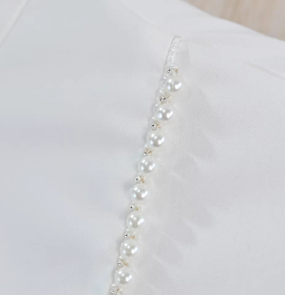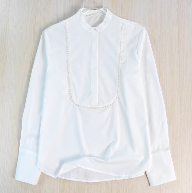 Женская нежная хлопковая рубашка с перламутровым украшением