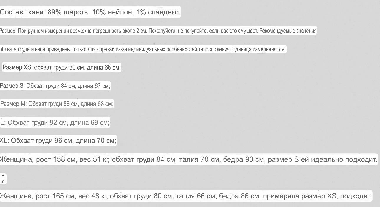 Материал: 89% шерсть 10% нейлон 1% спандекс