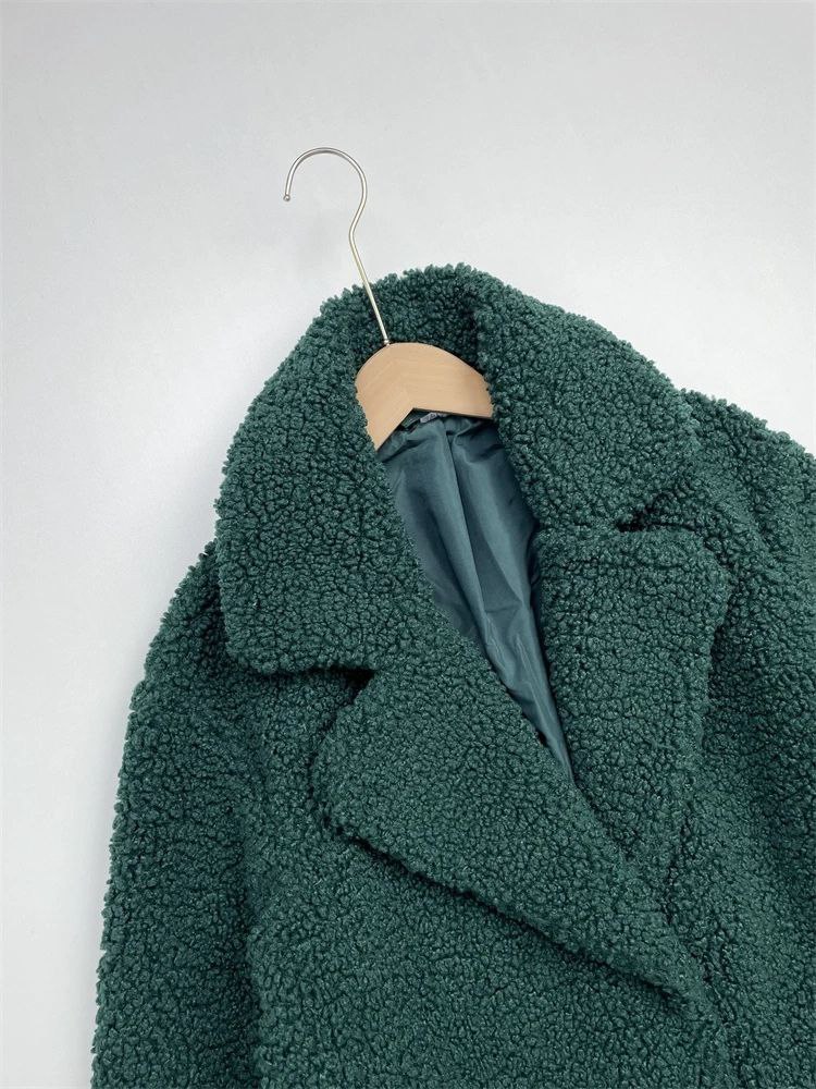 Женская шуба темно-зеленого из искусственного меха свободного кроя Ank*o
