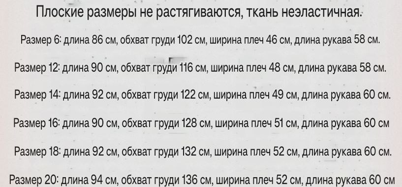 Размер: 12, 14, 16, 18, 20