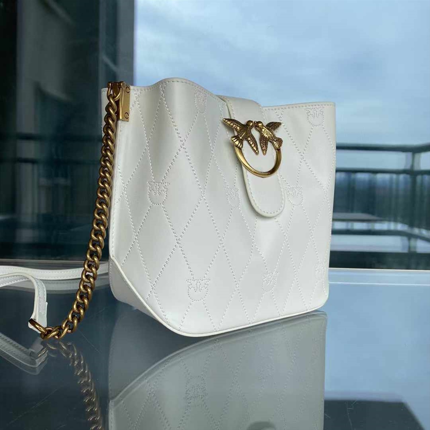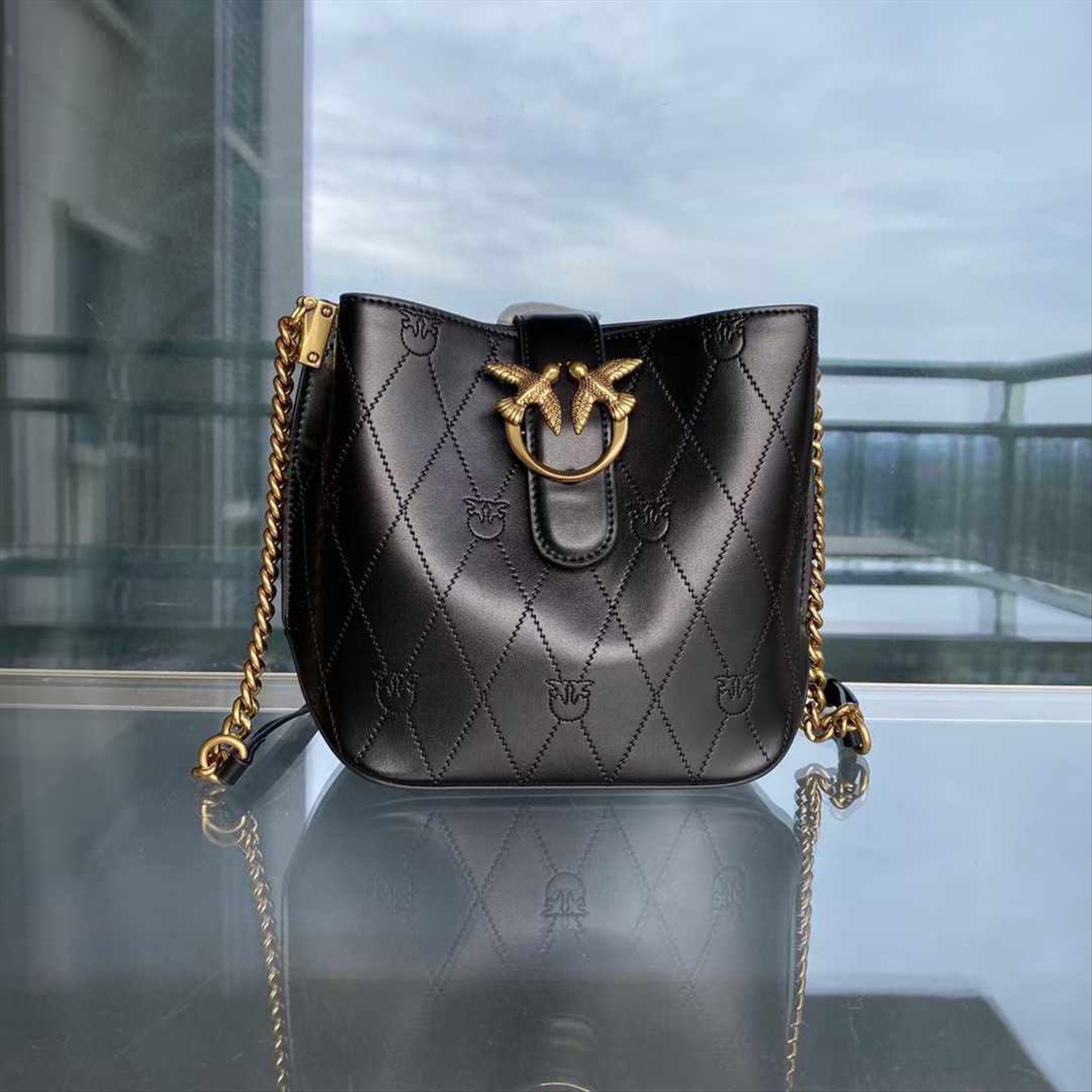 Женская сумка-ведро PINKO с тиснением логотипа и цепочкой на плечо, размер: 19*19*11 распродажа