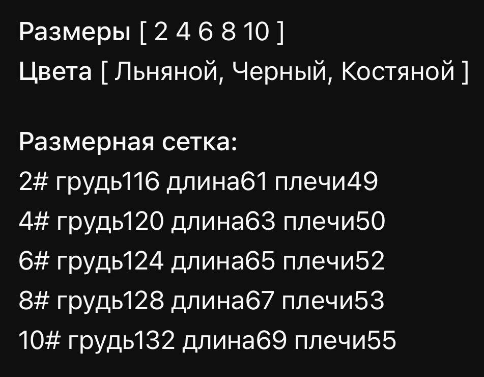 Размеры: 2; 4; 6; 8; 10