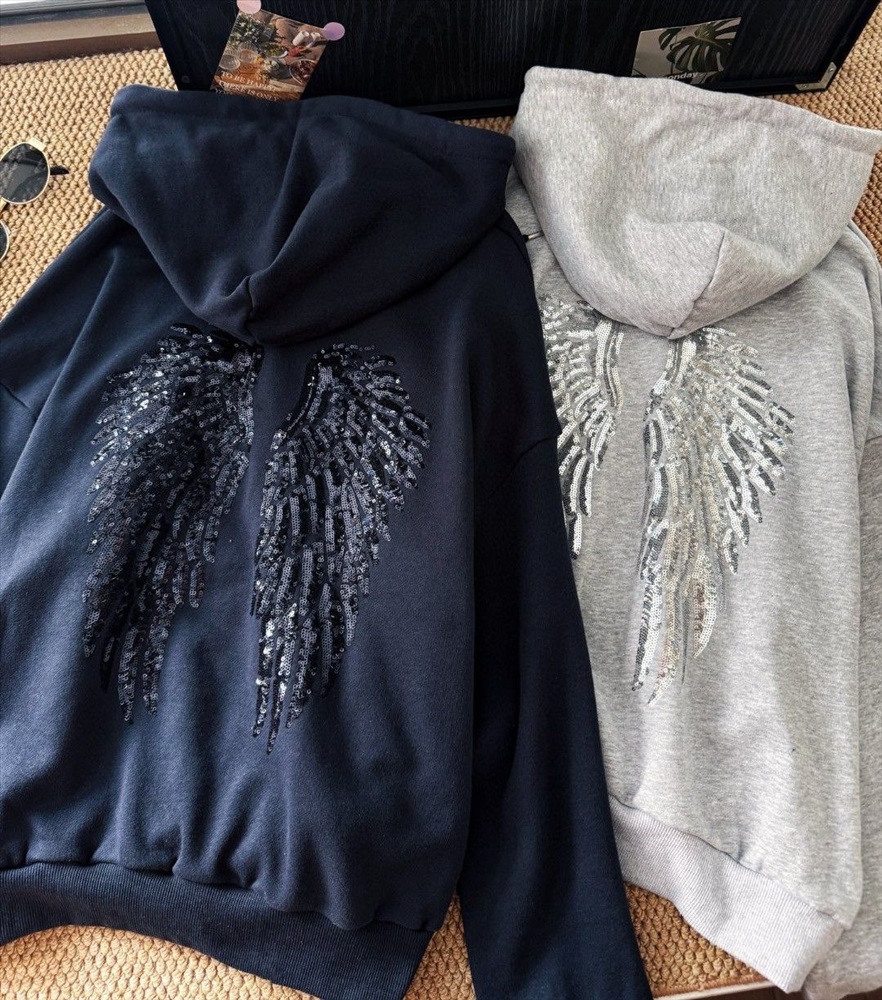 Женская толстовка с капюшоном / худи с переливающимися крыльями ДИО*Р