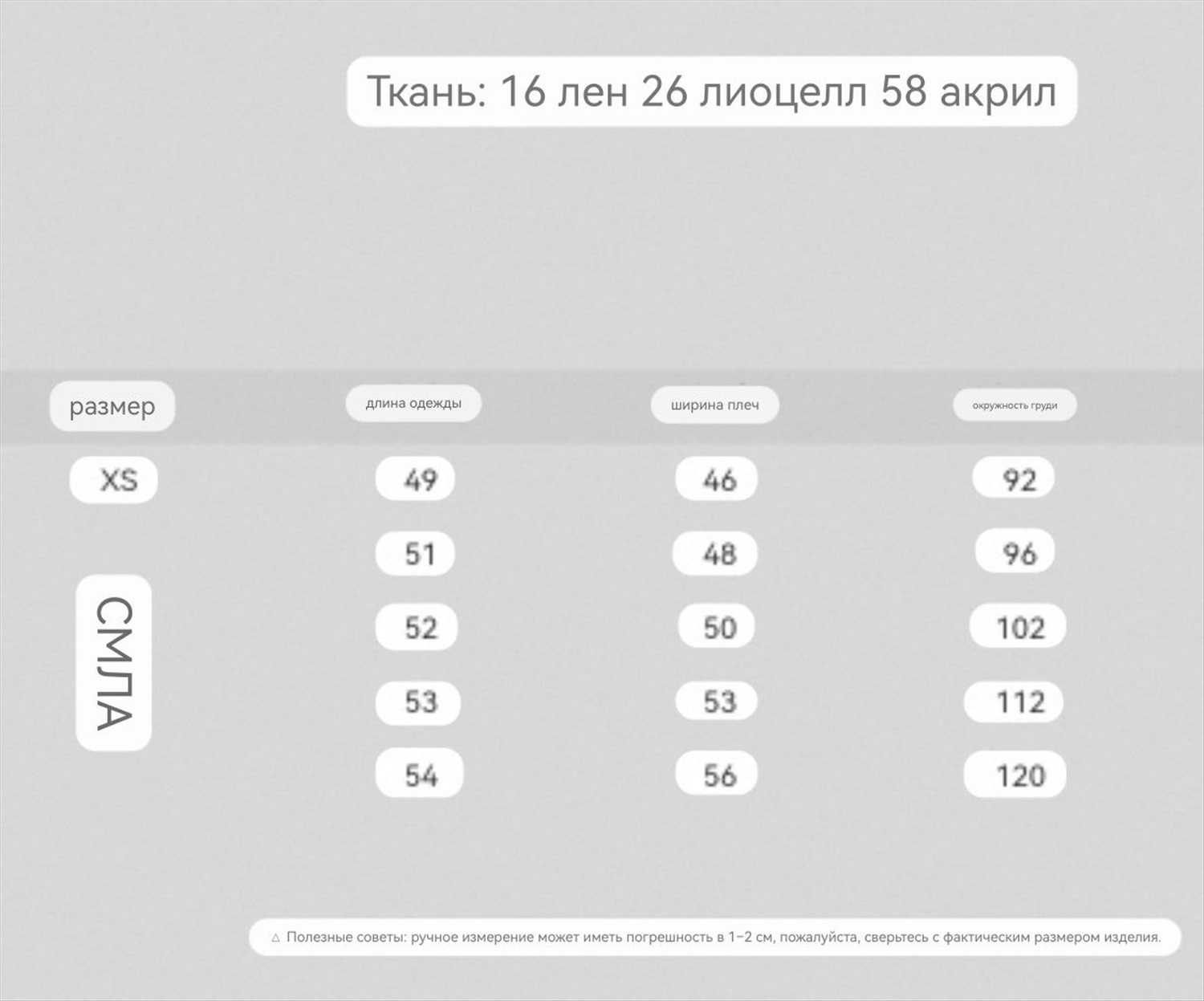 Материал: акрил, лиоцелл, лён Размеры: XS, S, M, L, XL Комментарии к товару