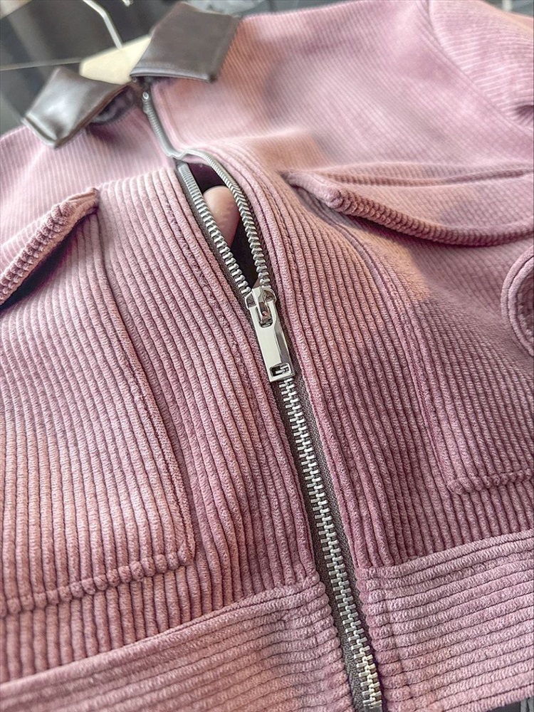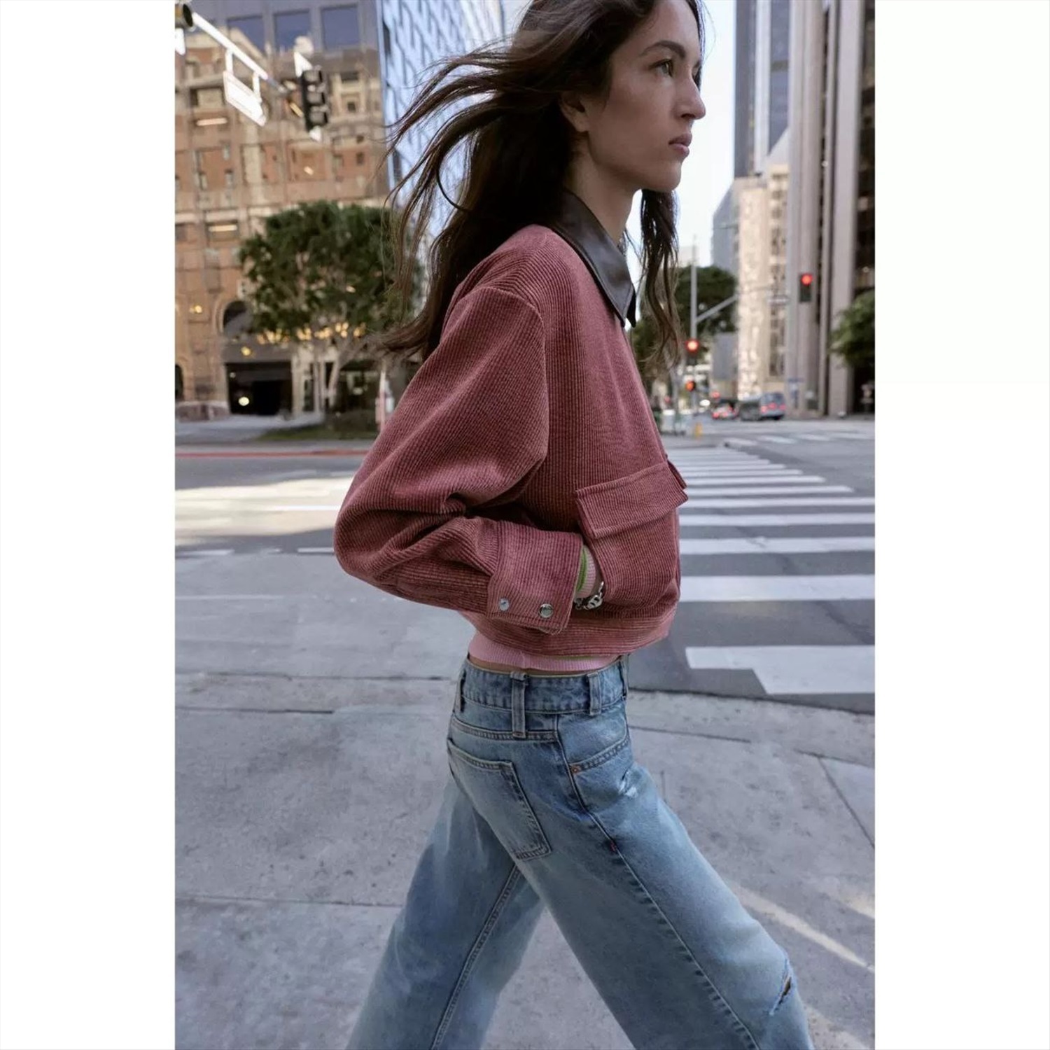 Женская вельветовая куртка с воротником из искусственной кожи ЗАР*А