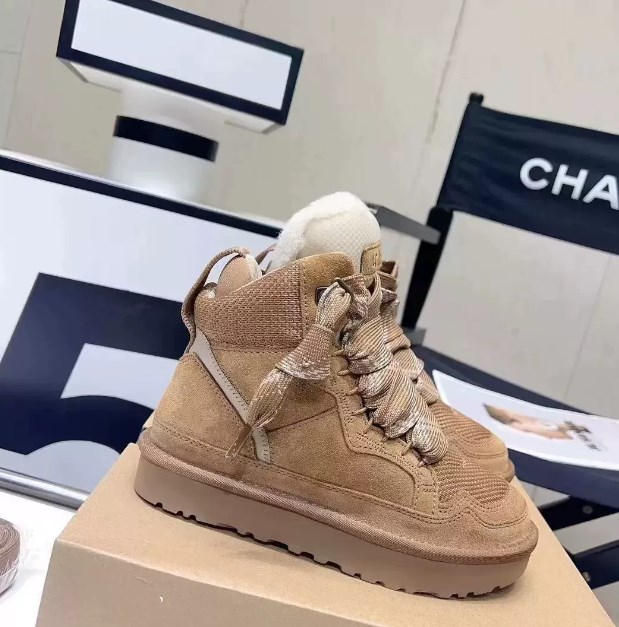 Женские ботинки на плоской подошве с круглым носком и шнуровкой.