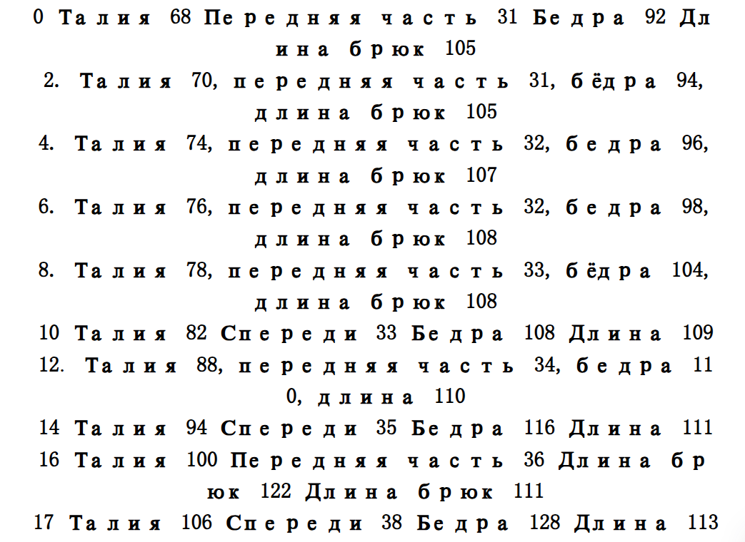 Размер: 0, 2, 4, 6, 8, 10, 12, 14, 16, 17