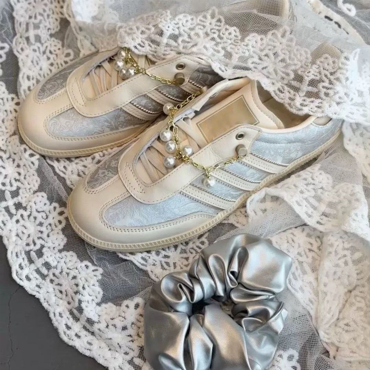 Женские кеды АДИДА*С с кружевным принтом