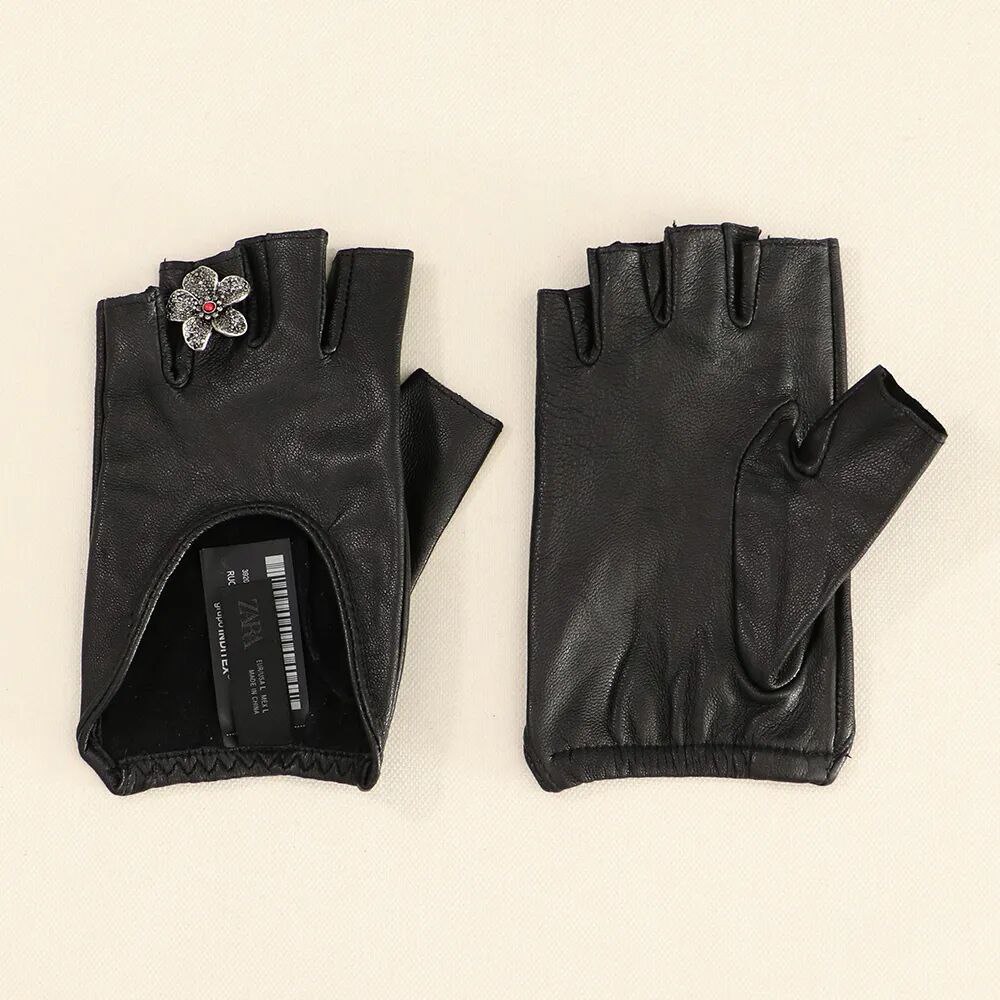Женские кожаные перчатки Zar*a с короткими пальцами, декорированное украшением