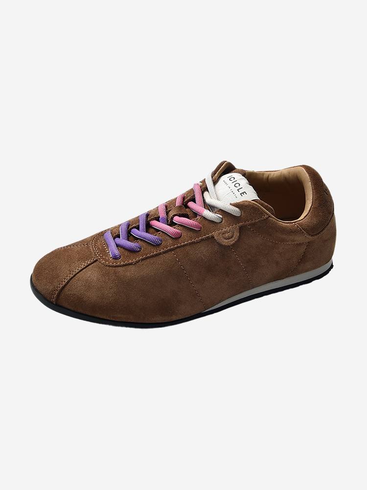 Женские матовые кожаные кроссовки с круглым носом