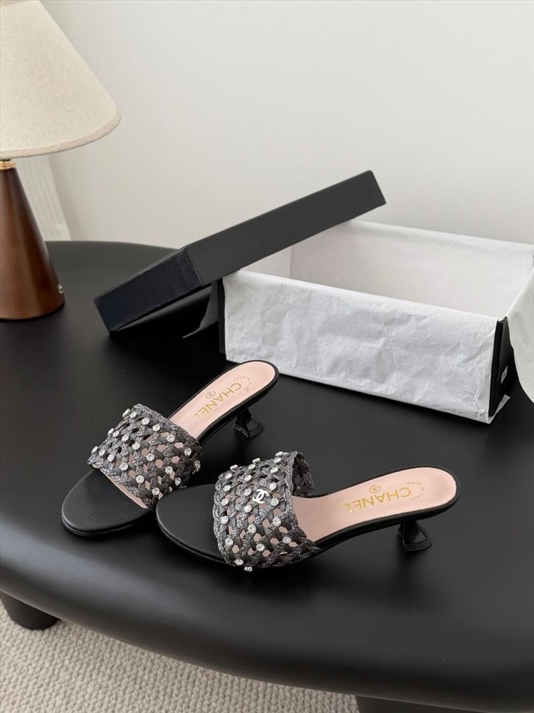 Женские шлепки / мюли на элегантном каблучке 5 цветов ШАНЕЛ*Ь